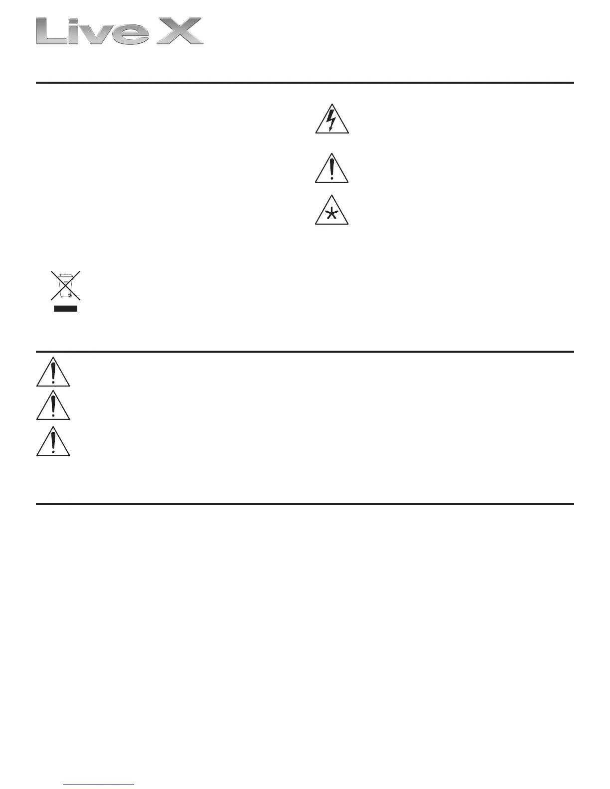 • Never expose a Live X loudspeaker to rain, water, or high moisture.