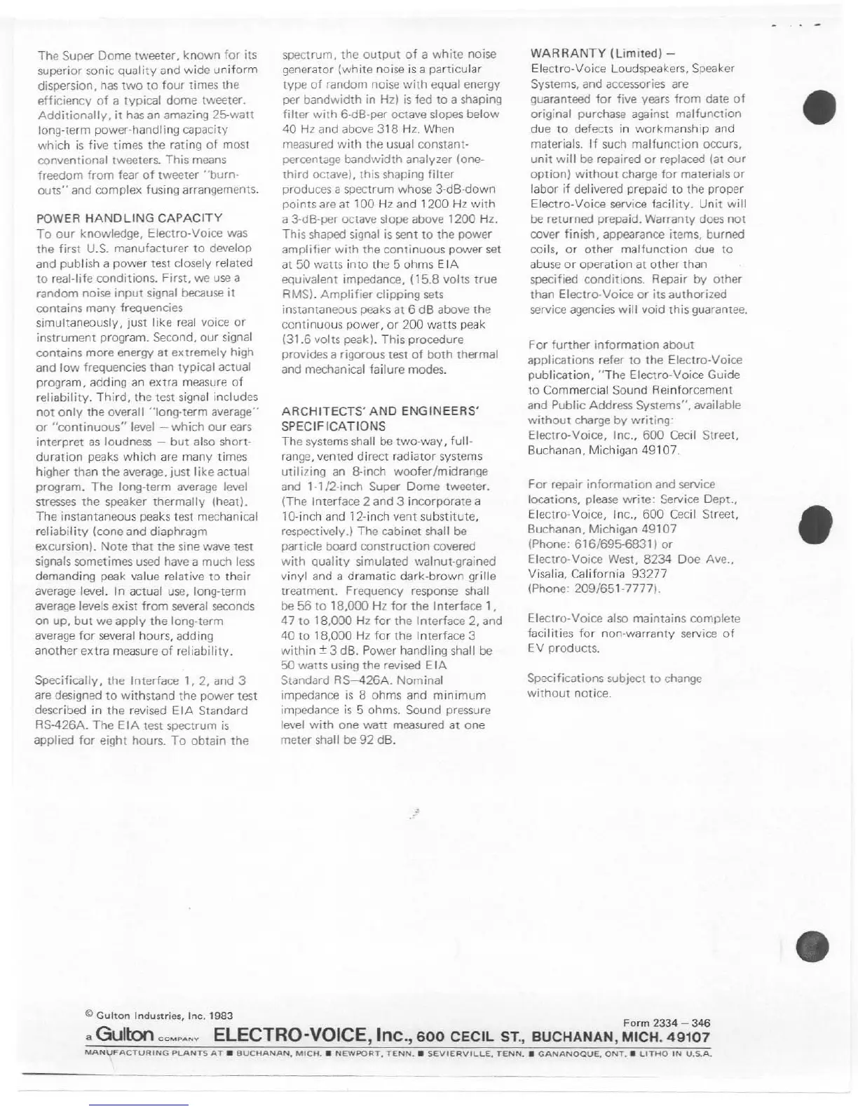 Electro-Voice Interface 1 Series II - Power Handling Capacity