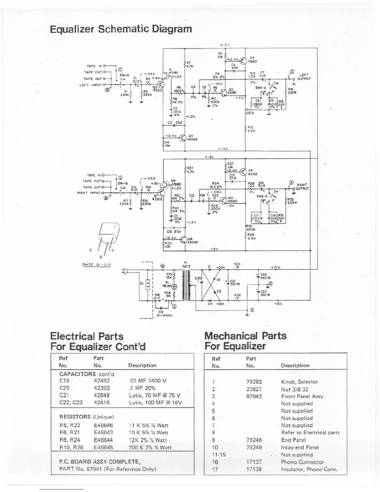 Electro-Voice Interface: A - Equalizer Schematic Diagram; Electrical Parts For Equalizer Contd; Mechanical Parts For Equalizer