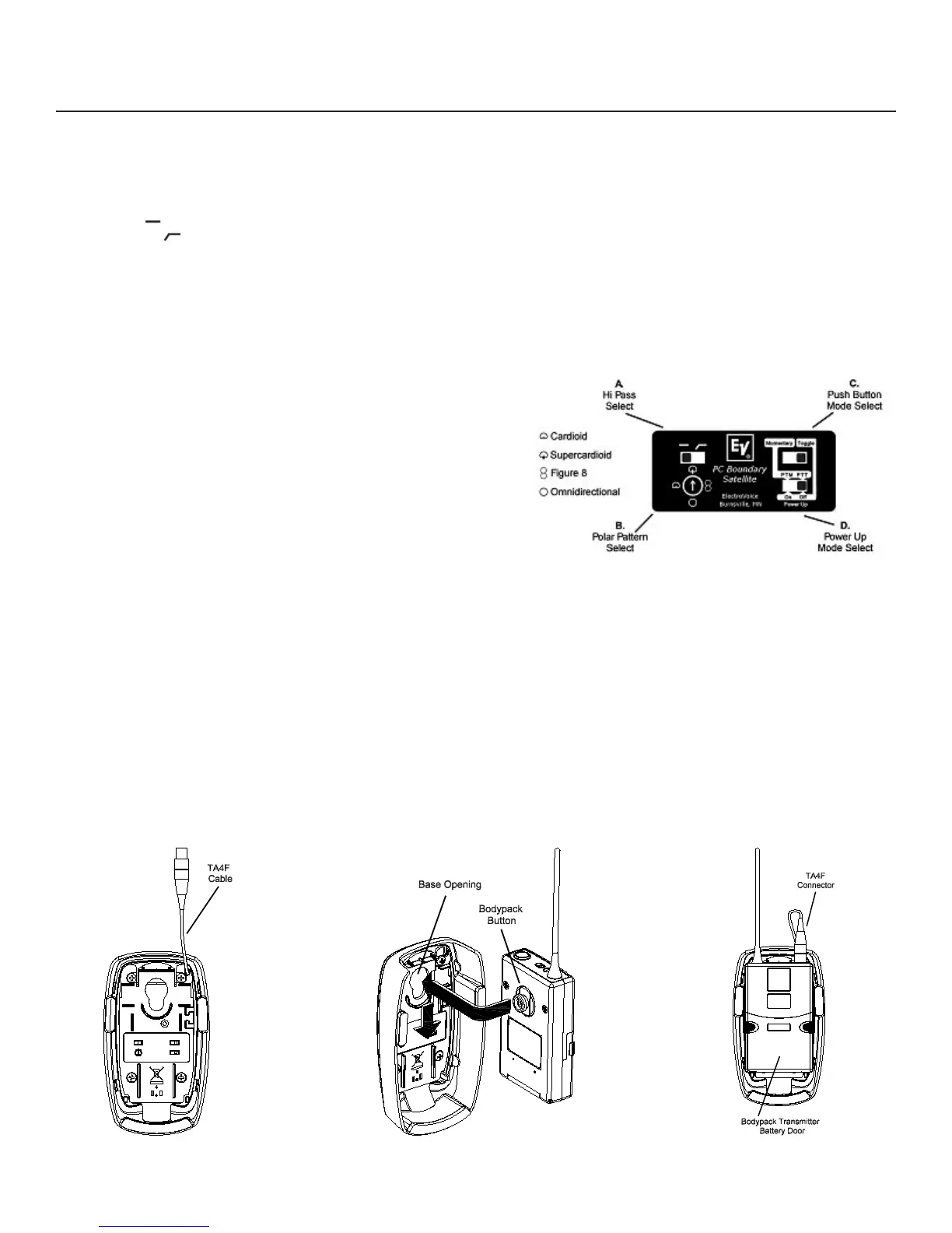 NOTE: The bodypack transmitter must have the “bodypack” button installed on the back of its’ housing. The bodypack does not ship with this part