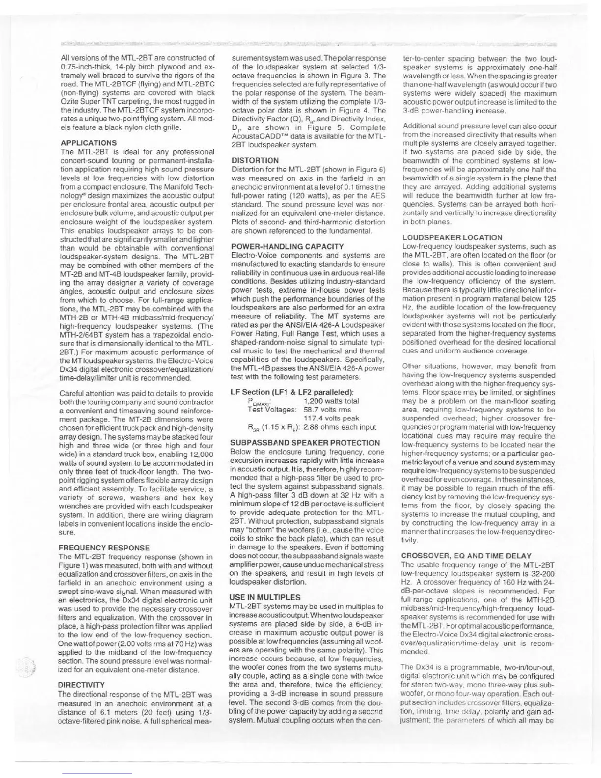 Electro-Voice MTL-2BT - Technical Details and Applications; Applications; Frequency Response Analysis; Directivity and Beamwidth