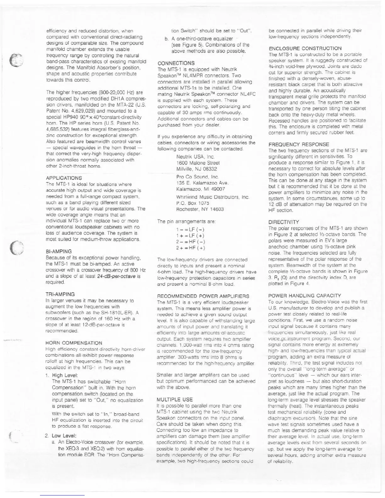 Electro-Voice MTS-1 - System Setup and Operation; Applications; Bi-Amping Requirement; Horn Compensation
