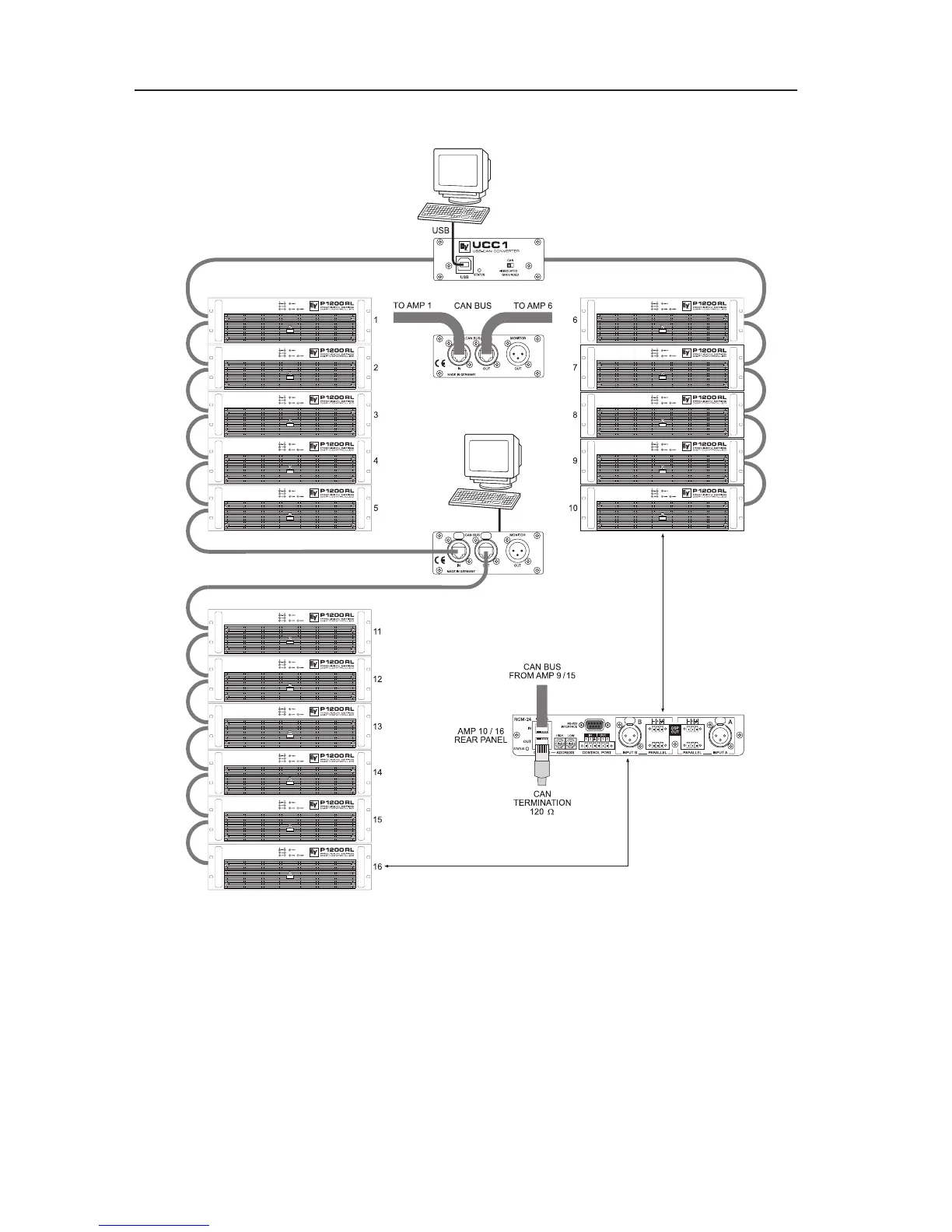 Terminators at amp 10 (rst unit on the bus) and amp 16 (last unit on the bus)