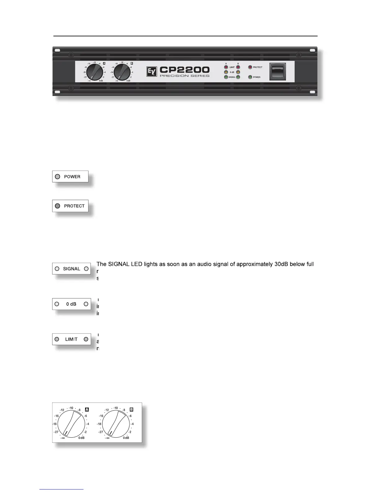 The 0dB LED lights whenever the power amplifi er is driven at its maximum. Higher