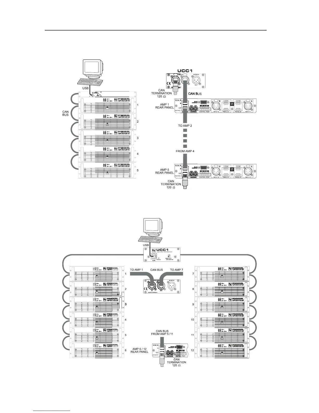 Terminators at the UCC1 ( rst unit on the bus) and at amp 5 (last unit on the bus)