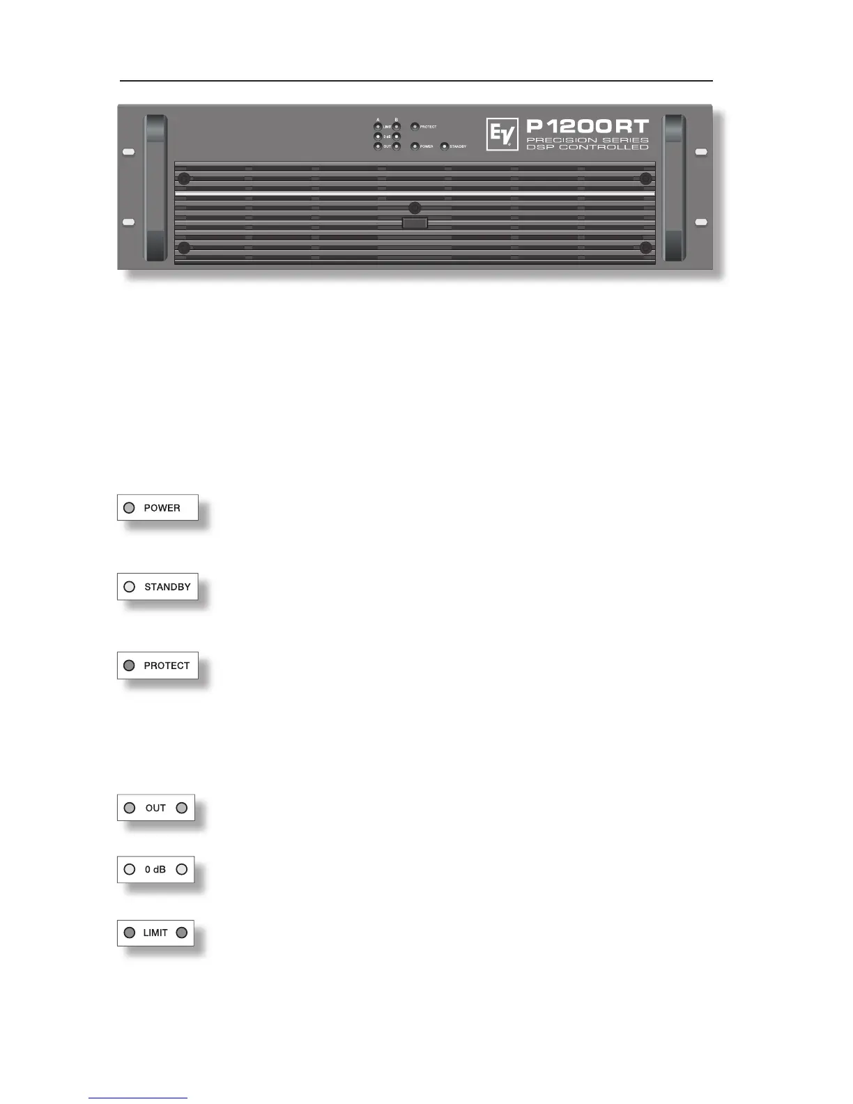 Die 0dB Anzeige leuchtet auf, wenn die Endstufe mit maximaler Aussteuerung be-