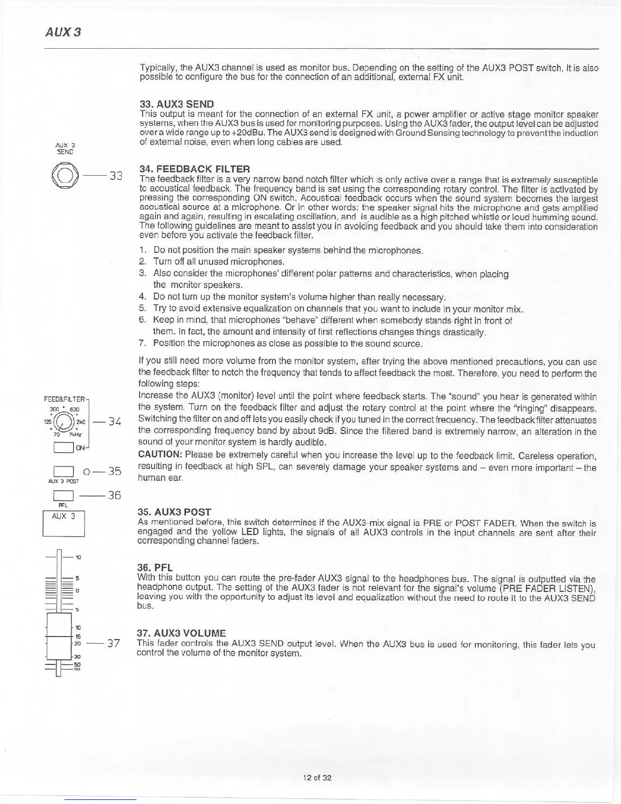 Electro-Voice PSX 2000 - Auxiliary 3 (AUX3) for Monitoring; AUX3 Send and Feedback Filter; AUX3 Post Fader, PFL, and Volume