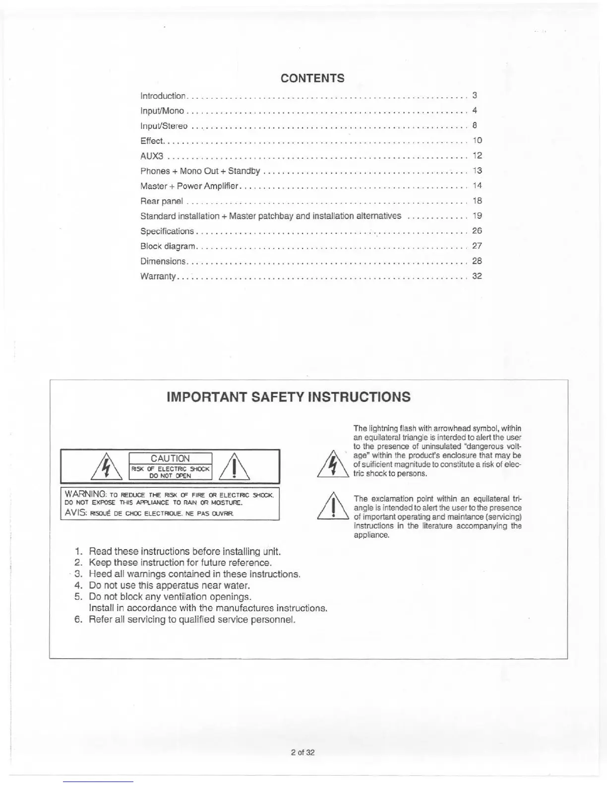 Electro-Voice PSX 2000 - Important Safety Instructions