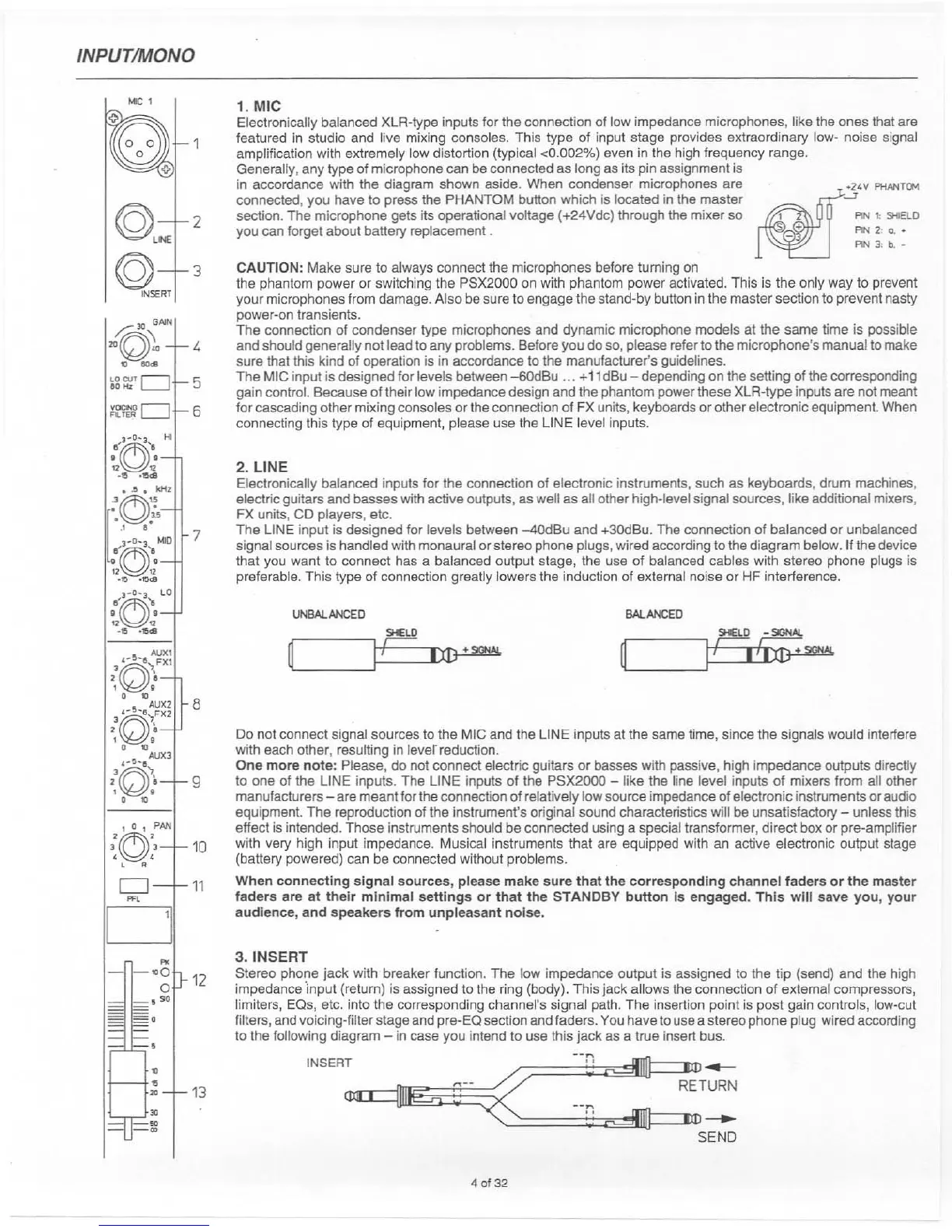 Electro-Voice PSX 2000 - Mono Input Channel Operations; Microphone and Line Input Details