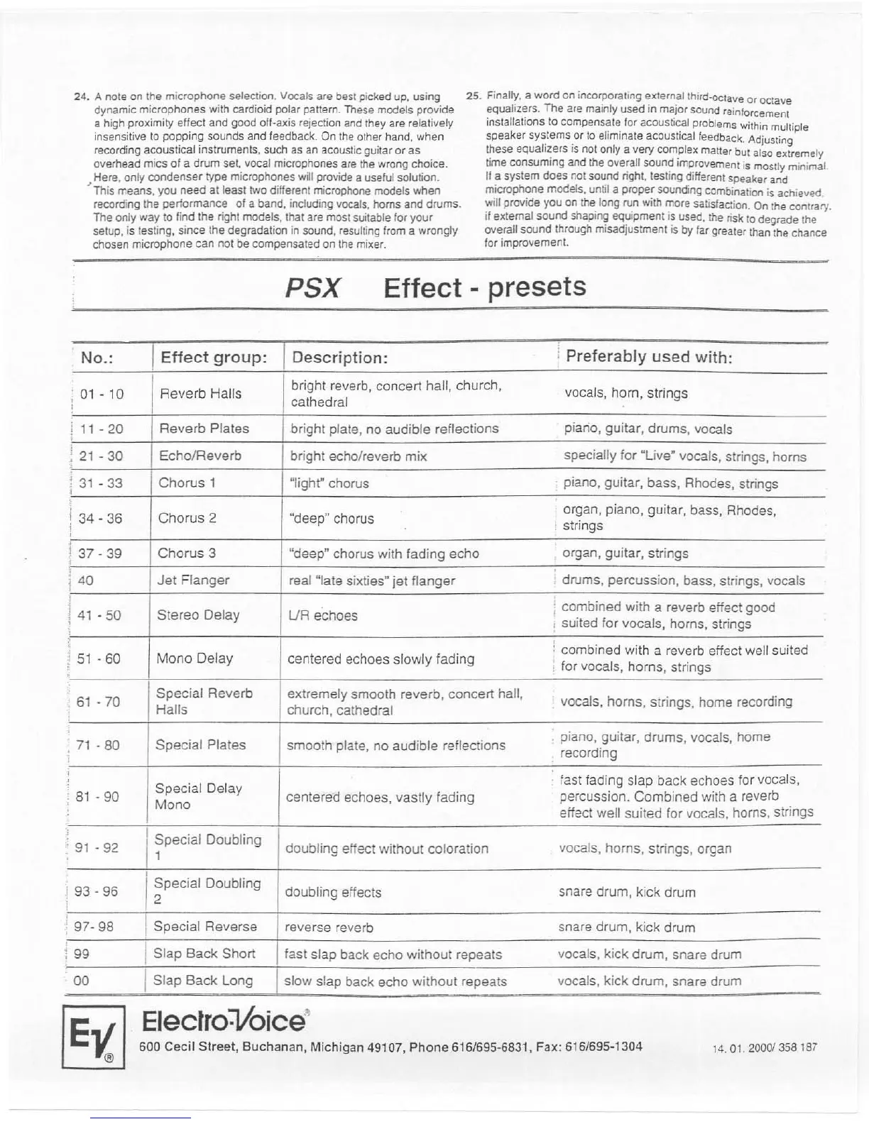 Electro-Voice PSX1000 - PSX Effect - Presets