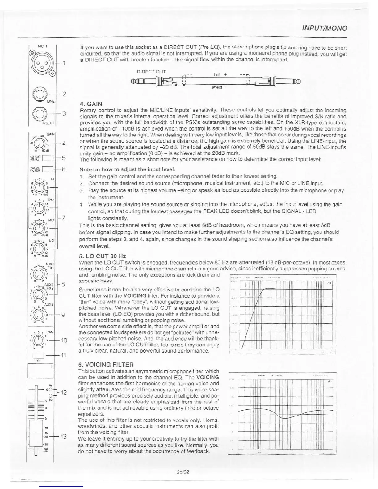 Electro-Voice PSX1000 - Mono Channel EQ and Filters; Gain, Lo-Cut, and Voicing Filter; EQ Section Details