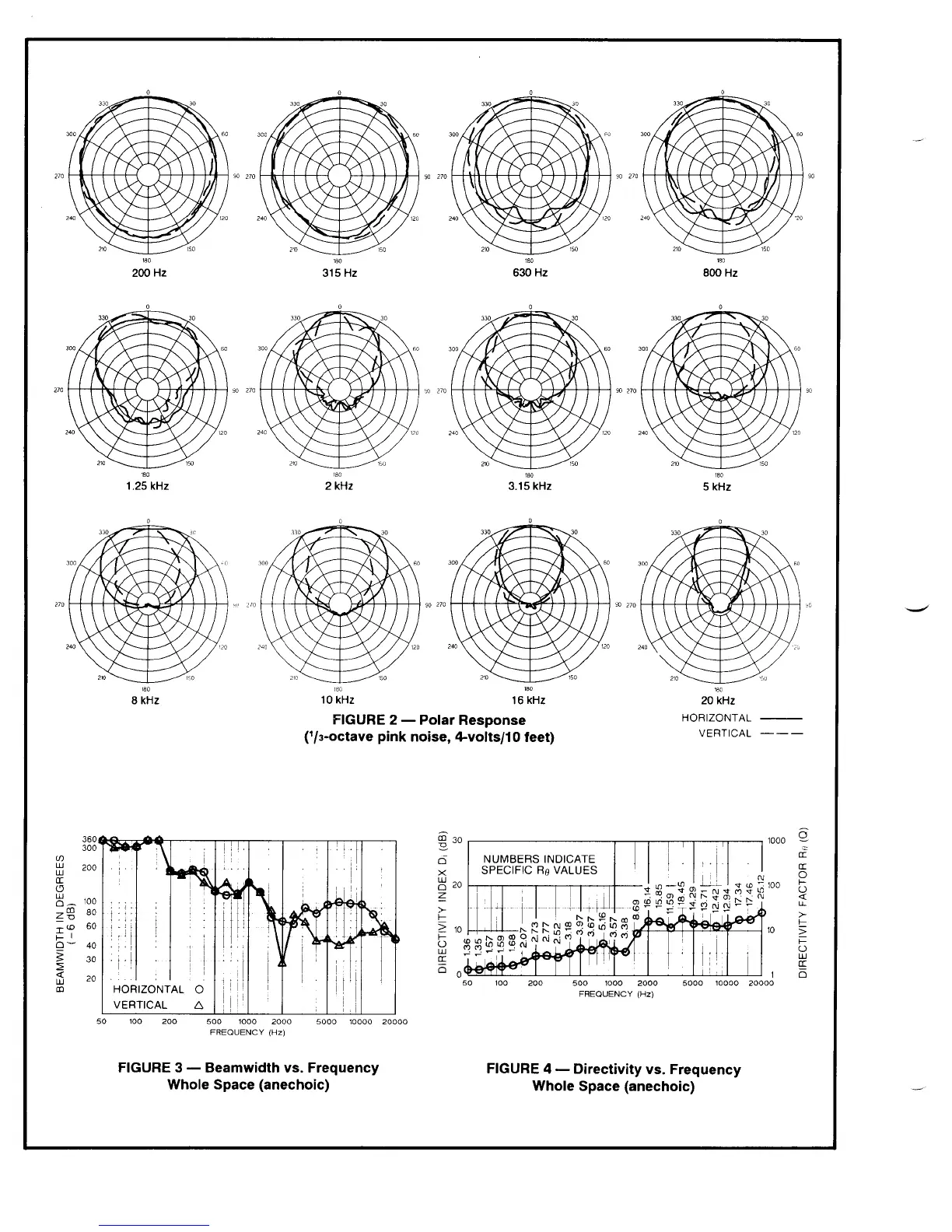Electro-Voice S-122 - Speaker System Performance Data; Polar Response Plots; Beamwidth and Directivity Analysis