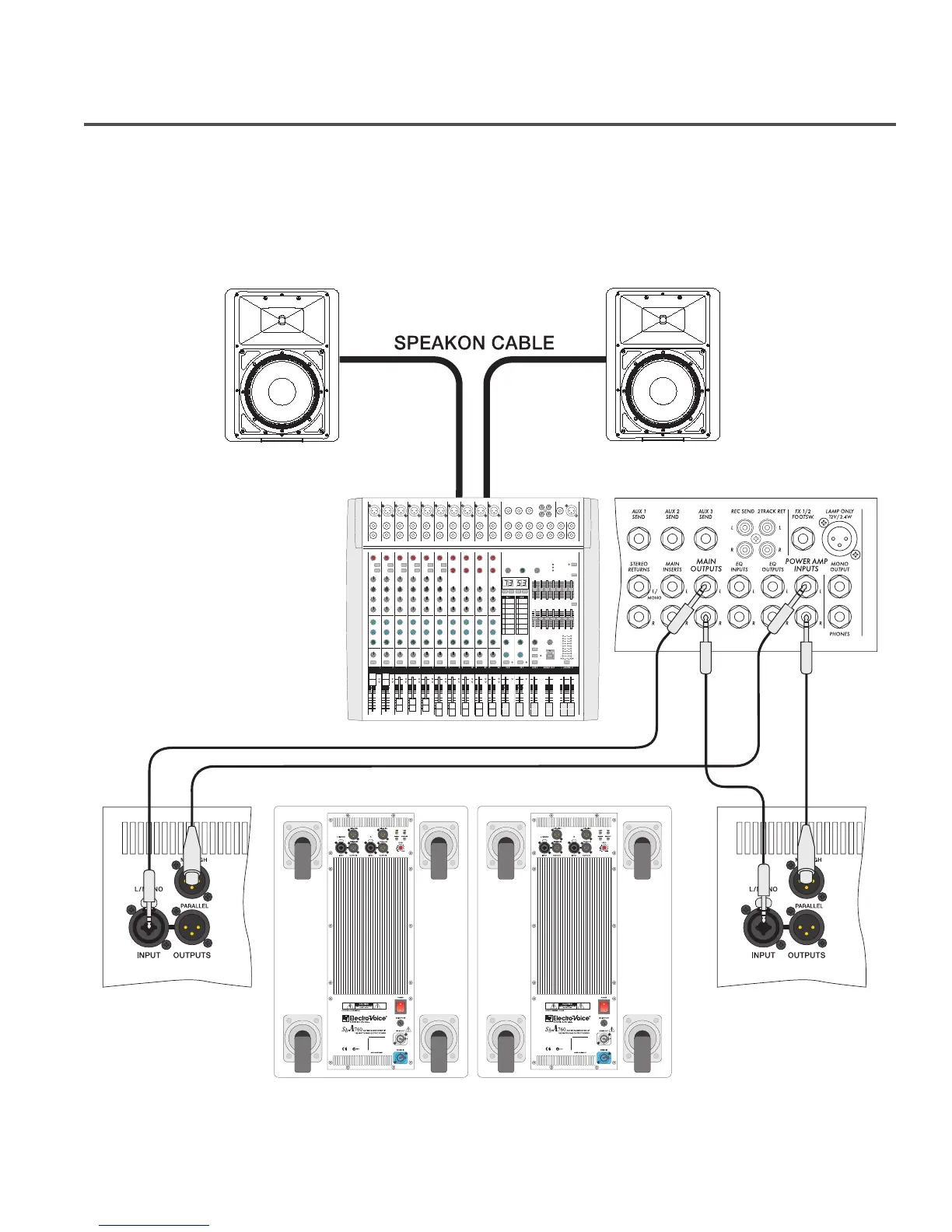 Electro-Voice SbA760 - Setup Example C; Stereo 2-way Active Operation with Stereo Subwoofer