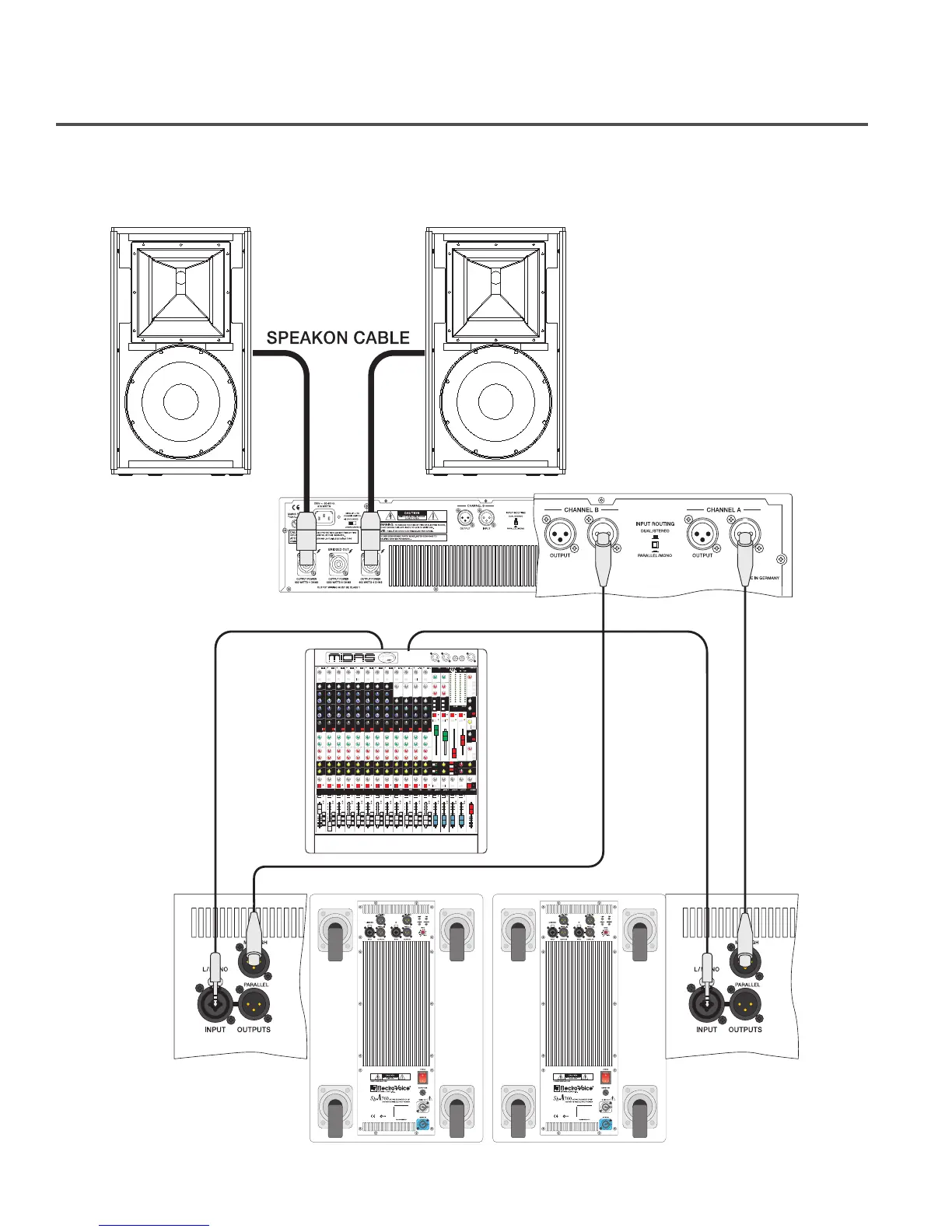 Electro-Voice SbA760 - Setup Example D; Stereo 2-way Active PA-System