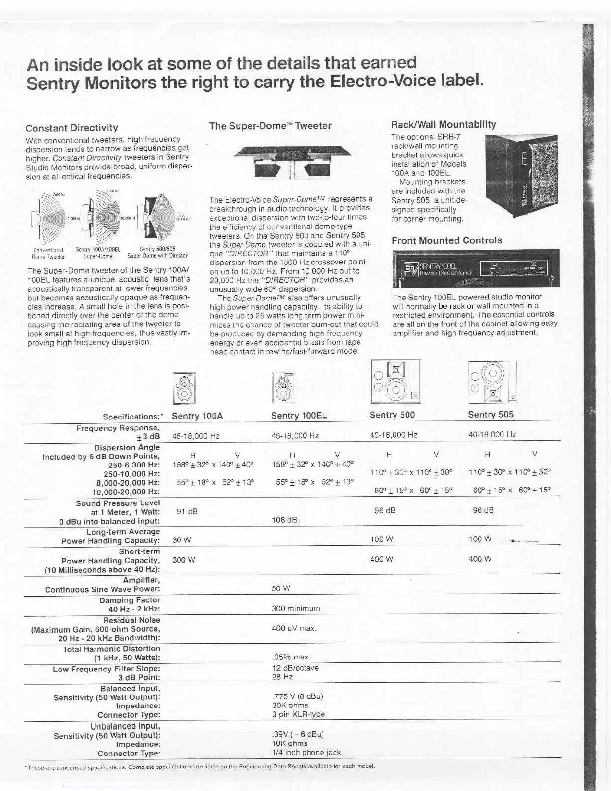 Electro-Voice Sentry 100EL - Model Comparisons and Technologies; Constant Directivity Technology; Super-Dome Tweeter Design