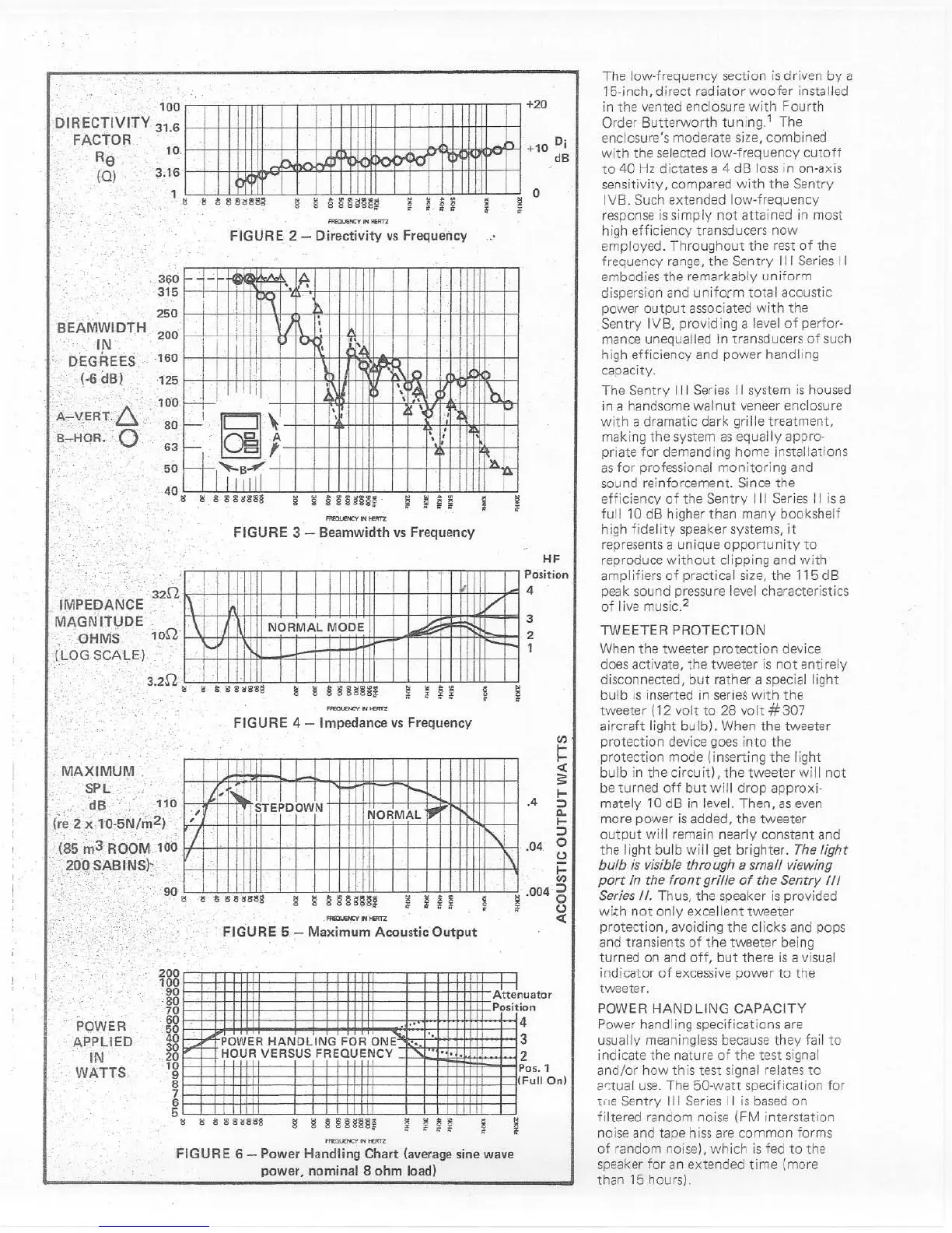 Electro-Voice Sentry III - Technical Performance Characteristics; Directivity vs Frequency; Beamwidth vs Frequency; Impedance vs Frequency
