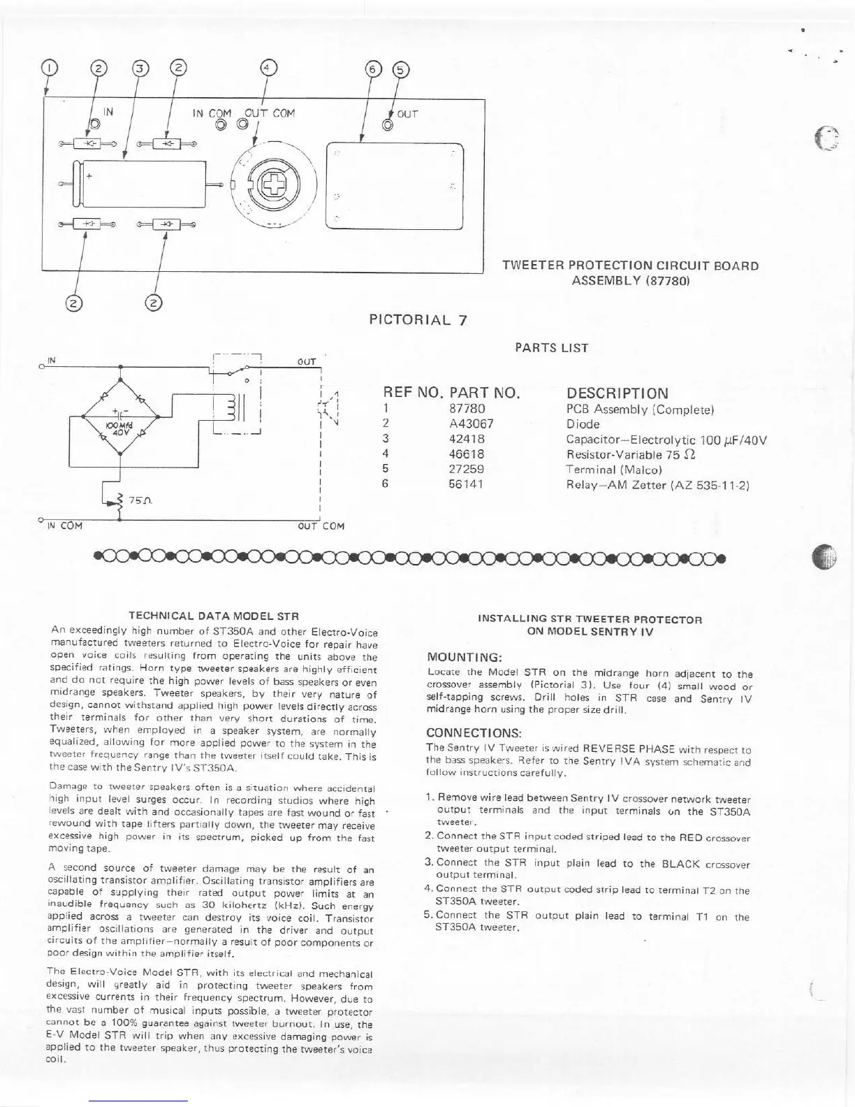 Electro-Voice SENTRY IVA - Technical Data and Installation of STR; Technical Data for STR; Installing STR on Sentry IV