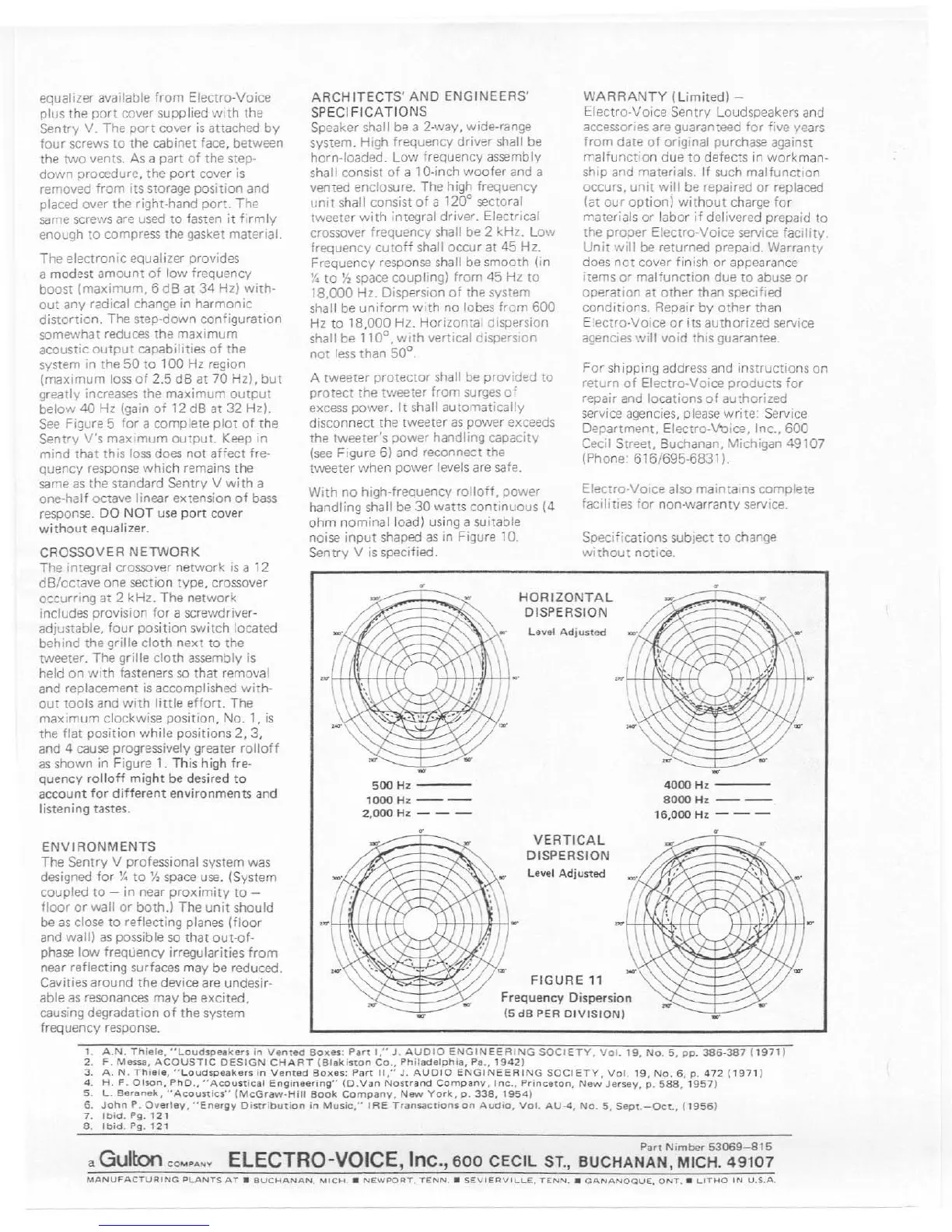 Electro-Voice Sentry V - Crossover Network; Crossover Network Design; Architects and Engineers Specifications; System Configuration
