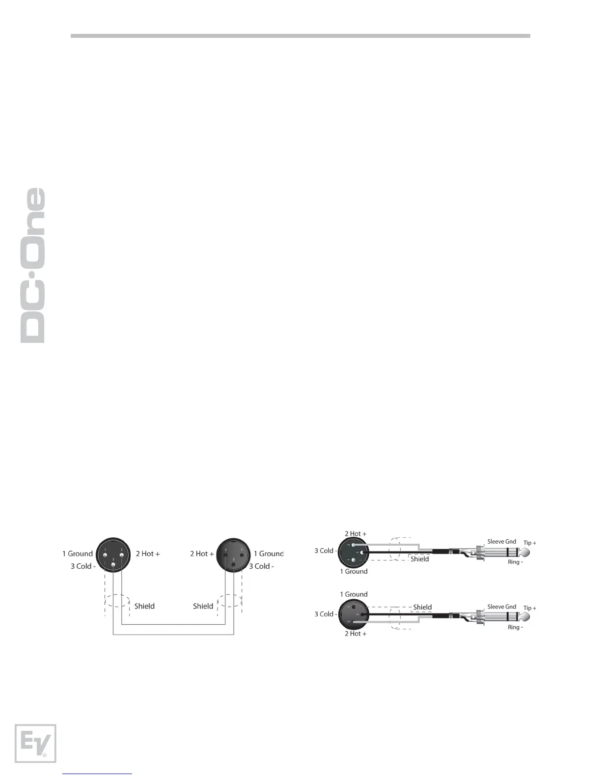 ground, pin 2 hot (+), pin 3 cold (-). Cable shielding must be connected to