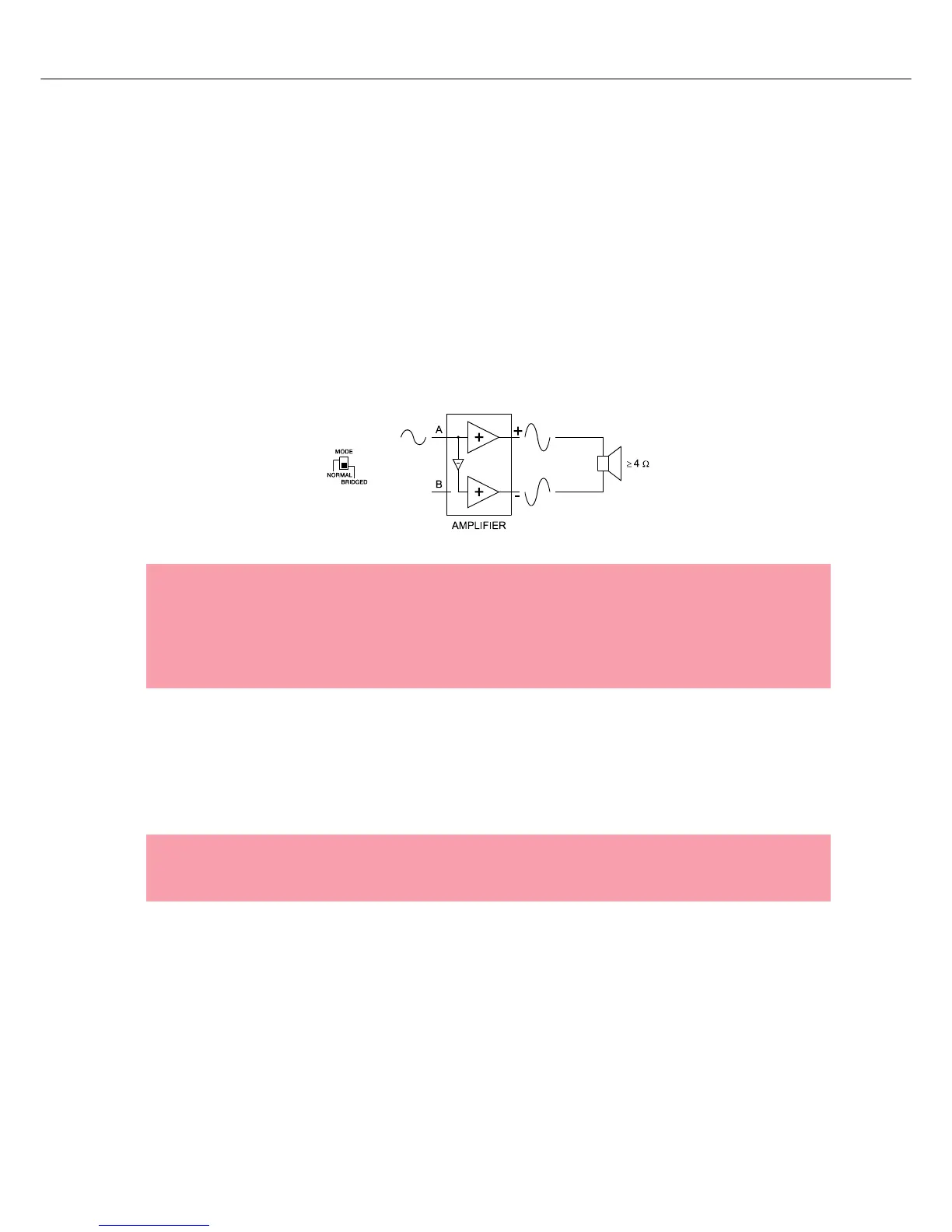 B inputs are inactive. In BRIDGED mode, the power amp channel A is modulated as usual.In addition, the