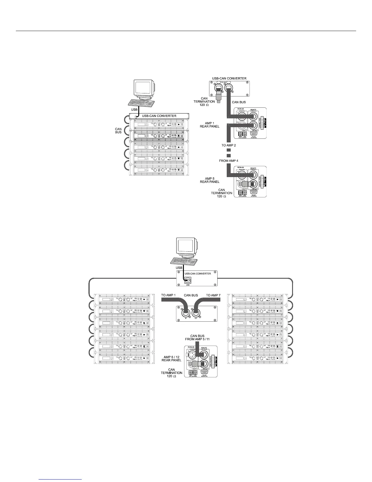 Illustration 4.12: System with 2 amp-racks and 1 USB-CAN-Converter. Termination plugs at amp 6 (first unit
