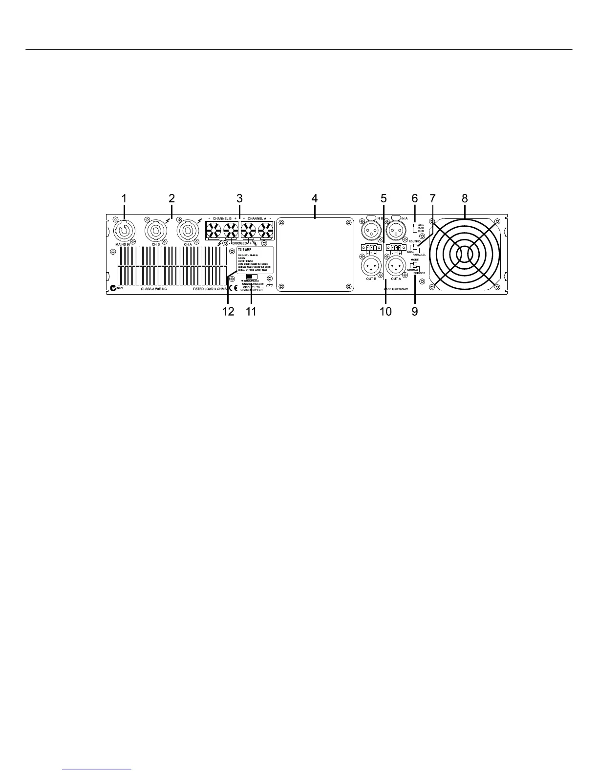 Endstufenausgangsklemmen (CHANNEL A, CHANNEL B, BRIDGED)