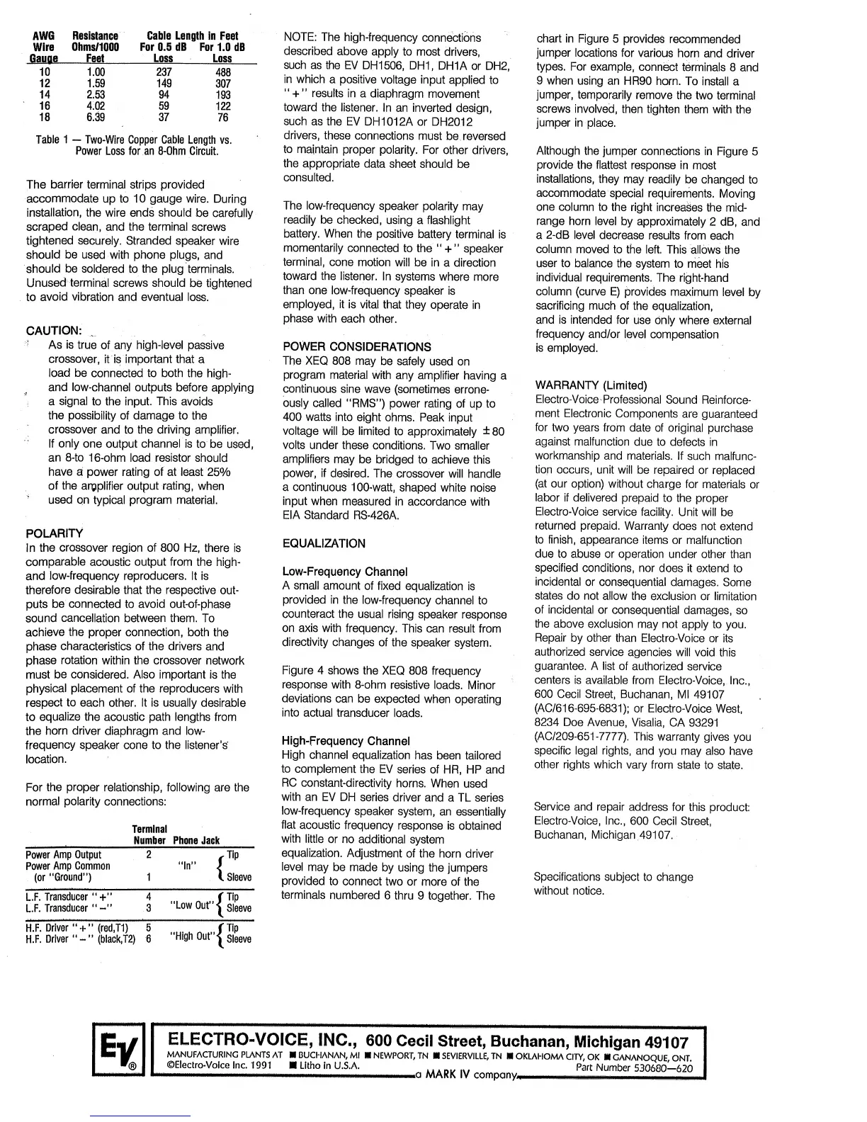 Electro-Voice XEQ 808 - System Polarity and Power; Polarity Alignment; Power Amplifier Compatibility; High-Frequency Adjustments and Equalization