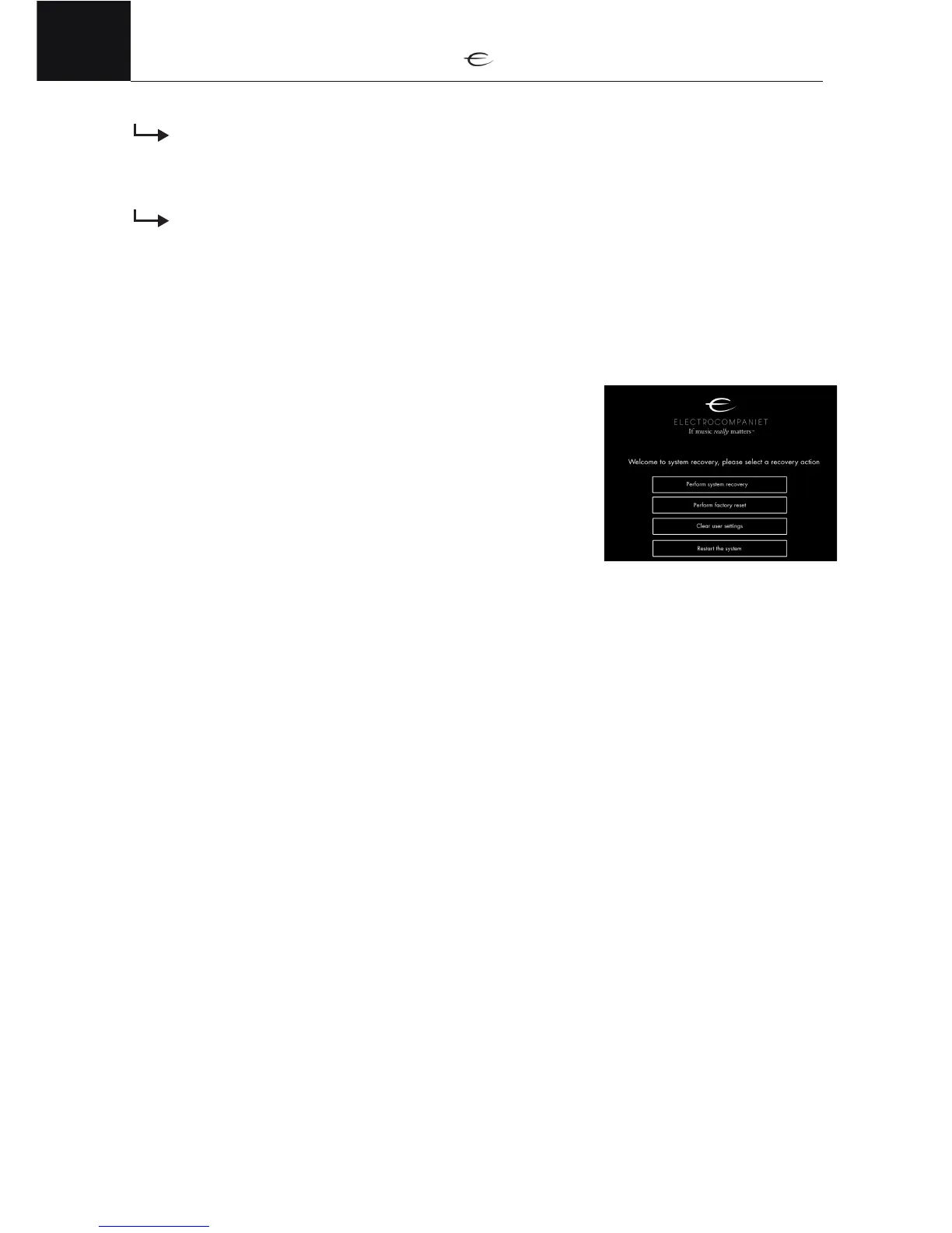 2. Turn power back on and wait until the Electrocompaniet logo is