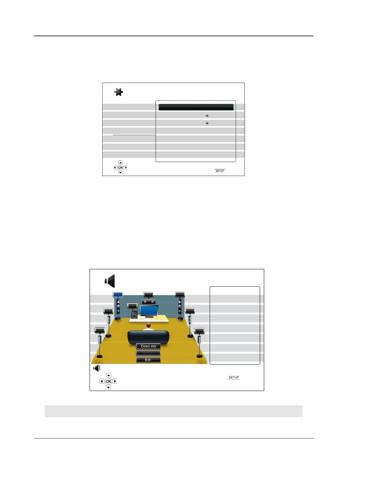 When the cursor is over the “Down Mix”, “Test Tone” or “Exit” options, you can also use the UP/DOWN