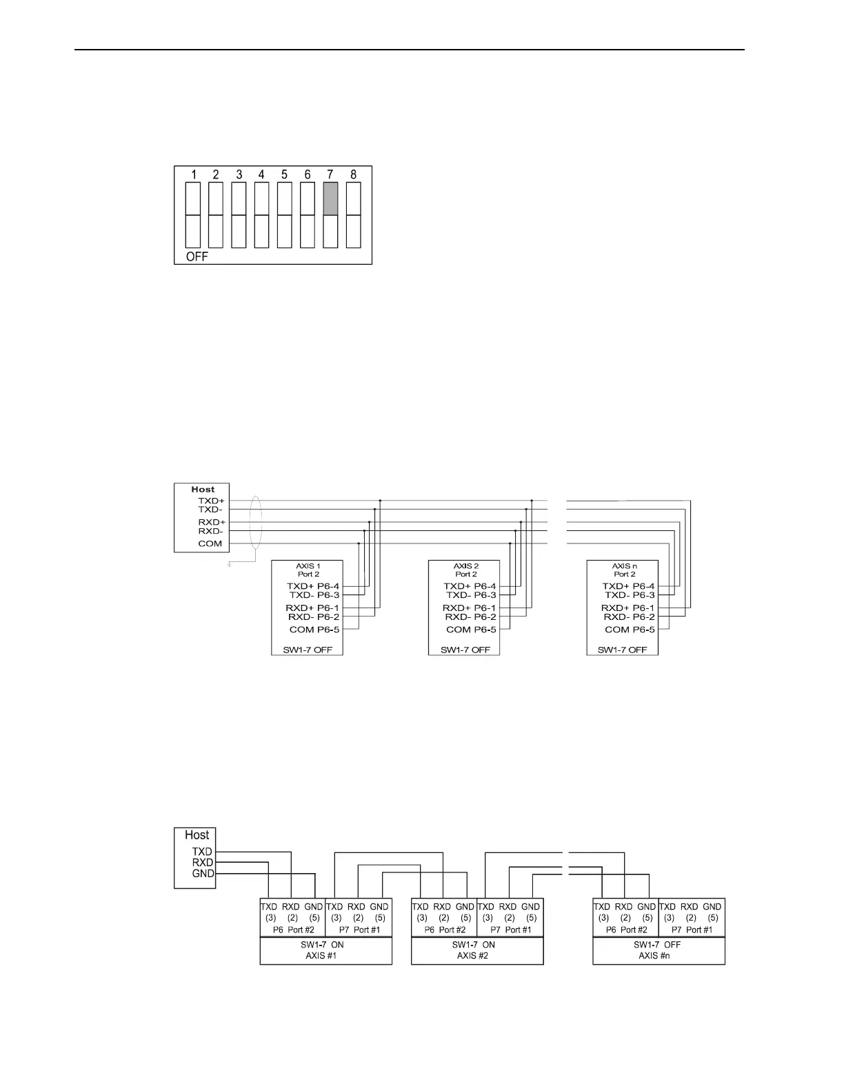 Figure 3.22 illustrates the setting of SW1-7 ON for the daisy-chain mode. Switch SW1-7 is used
