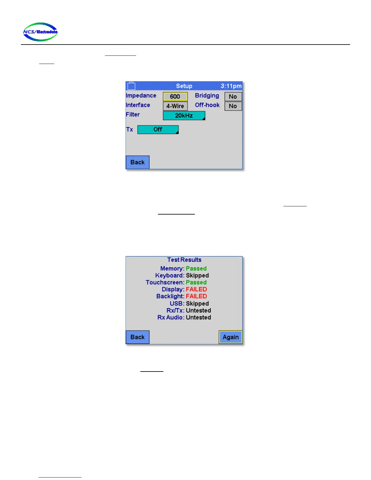 accessed by pressing the Self-Test button on the System Menu screen. This will begin a sequence of tests that require
