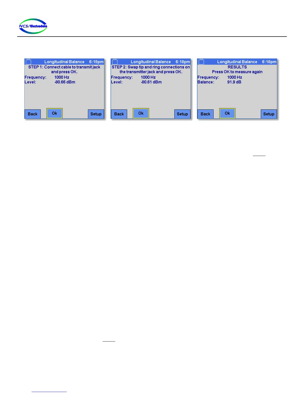 the longitudinal balance measurement results, pressing the OK button will allow another