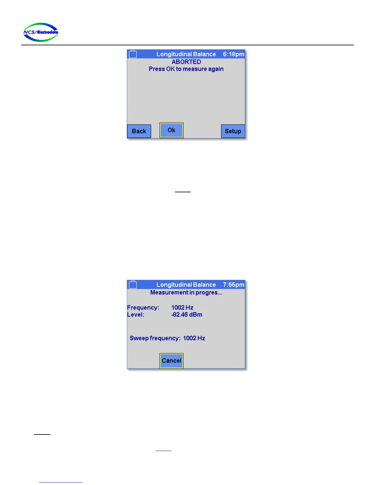 Pressing the Cancel button will abort the measurement and discard any partial results.