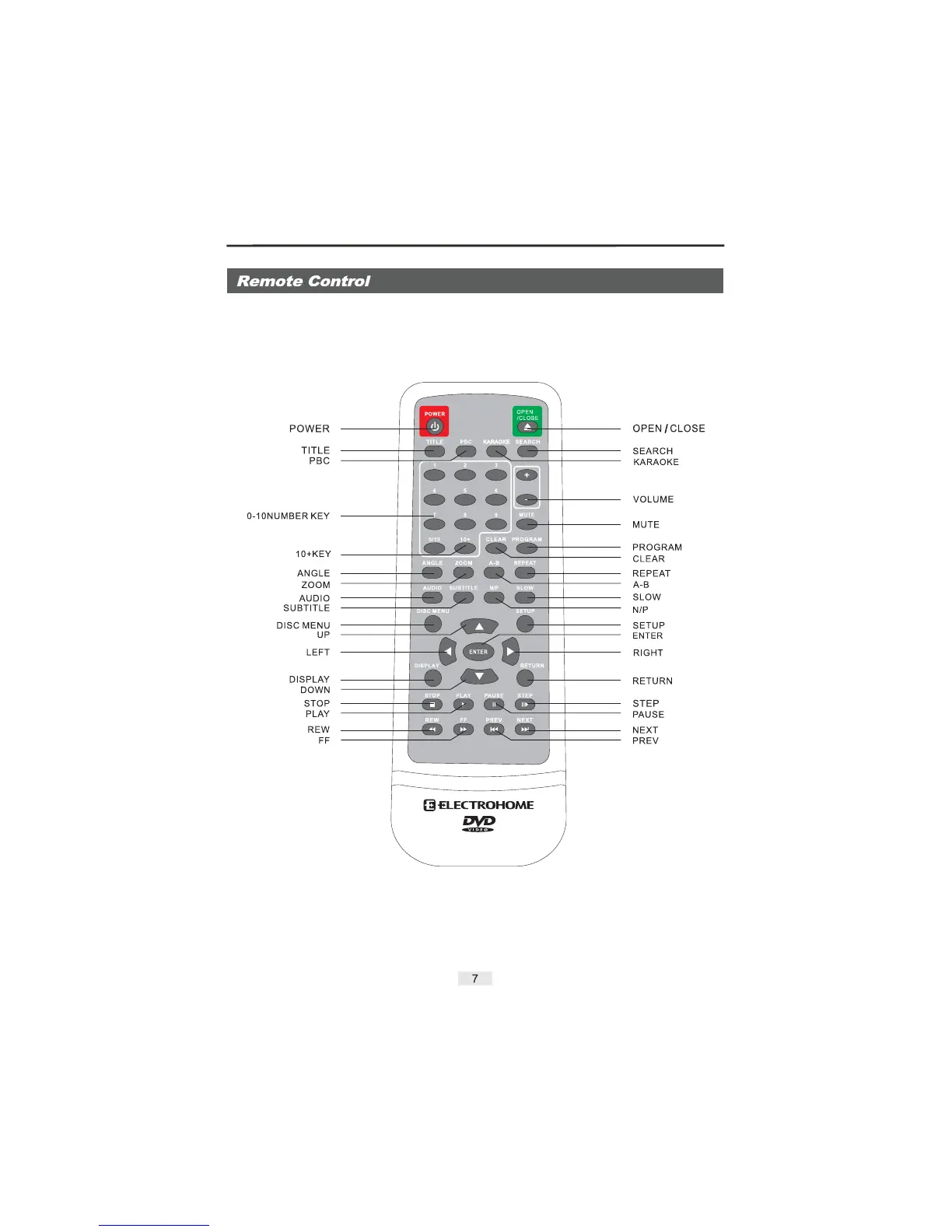 Electrohome DVD player - Remote Control; Remote Control Buttons