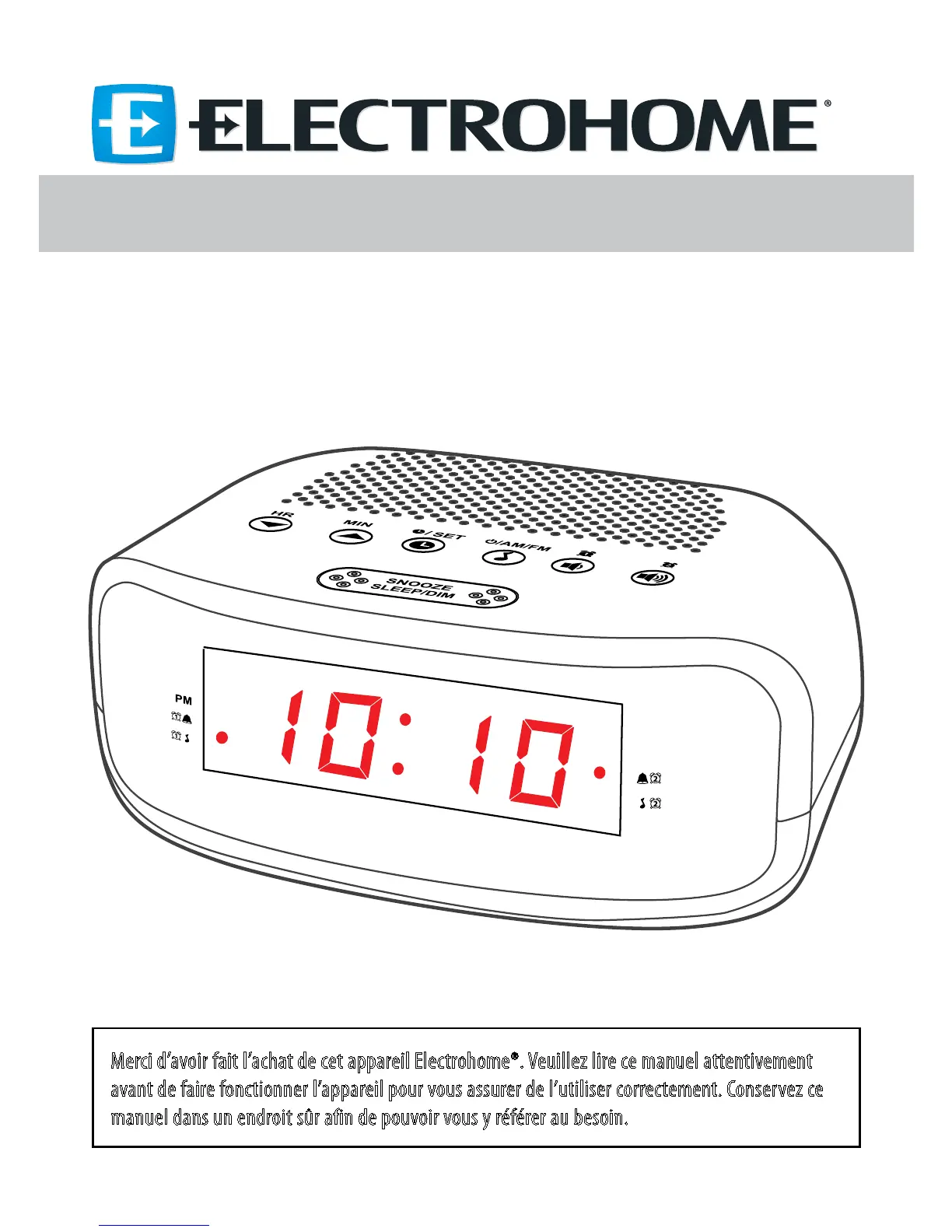 Merci d’avoir fait l’achat de cet appareil Electrohome®. Veuillez lire ce manuel attentivement