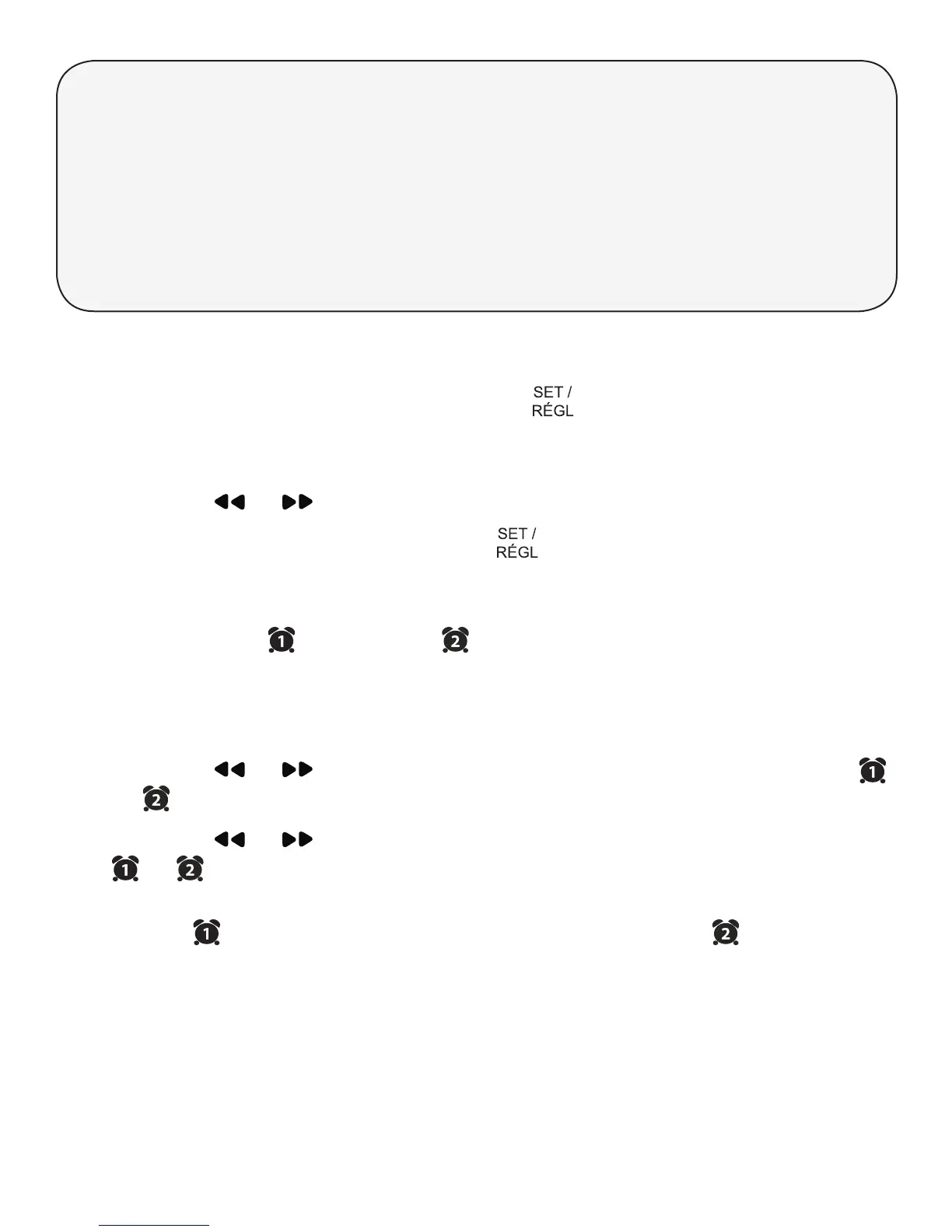 setting and then press and hold to enter the alarm set mode. The alarm time will
