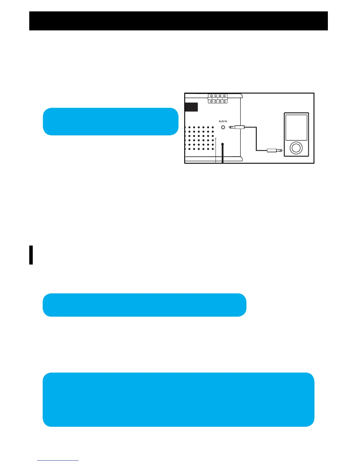 CD-AUX switch to AUX mode. Insert the 3.5mm Aux cable (not included) into the corresponding AUX IN Input