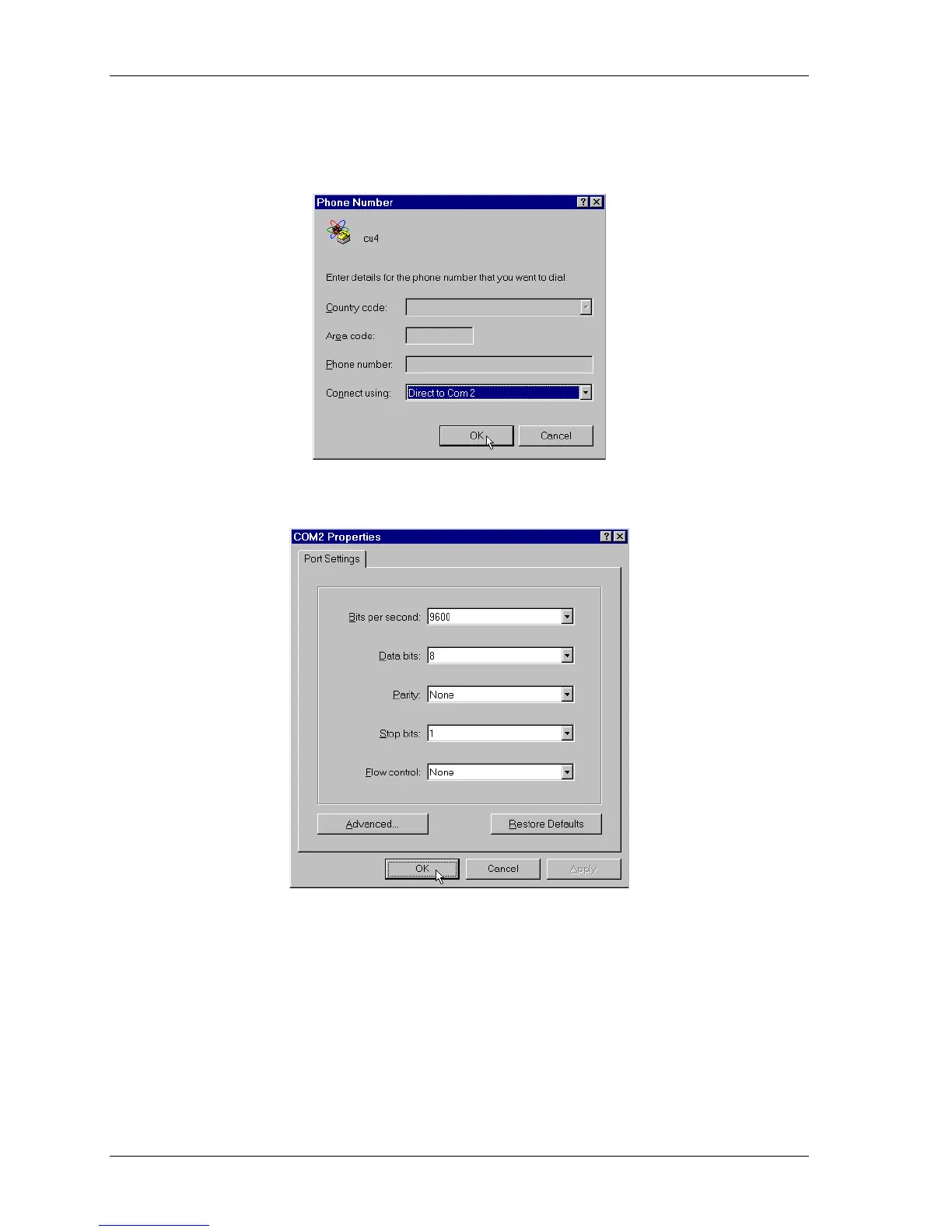 select the parameters that match the Control Unit’s port you will be using (COM 1 or