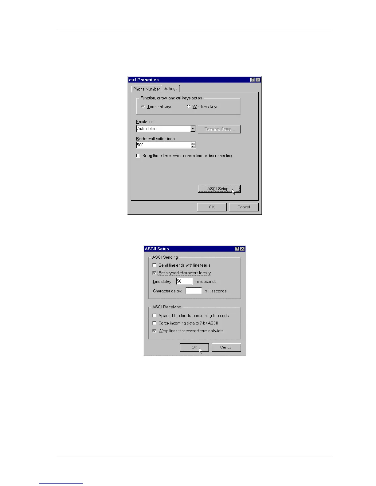 6. This calls up the ASCII setup window. Check the Echo typed characters locally box,