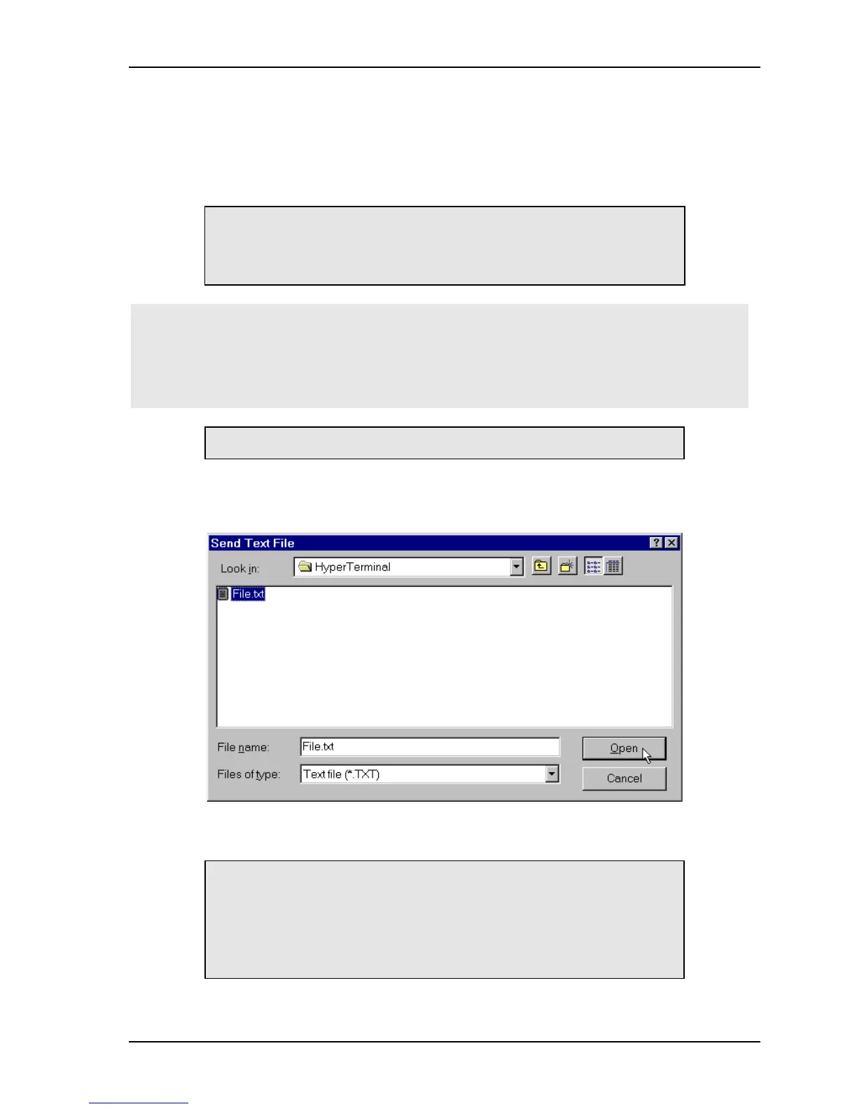 3. In HyperTerminal’s Transfer menu, select the Send Text File option.