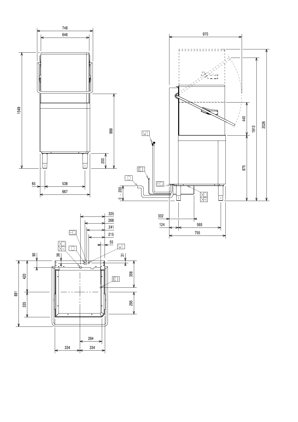 Installation diagram Manual hood type (single skin) without drain