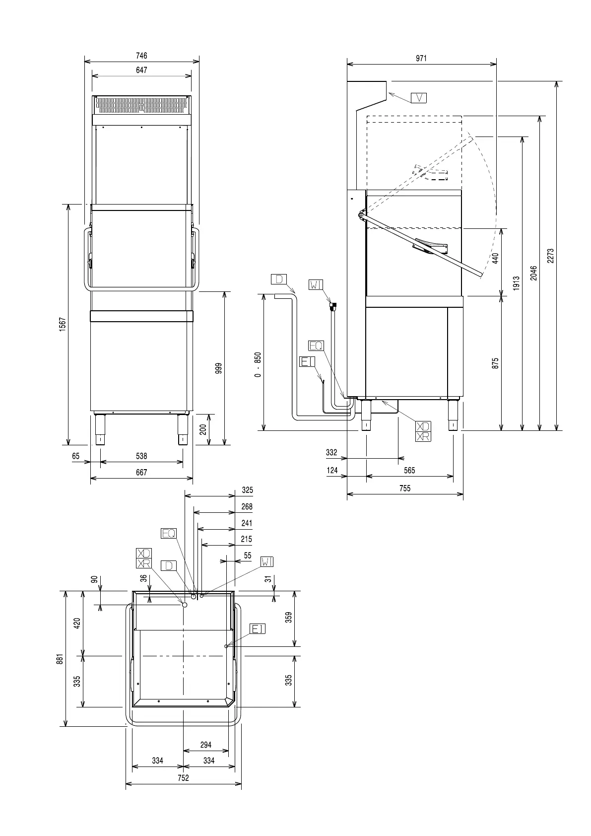 Electrolux Professional NHT8 - Installation Diagram - Single Skin, With Drain Pump and ESD