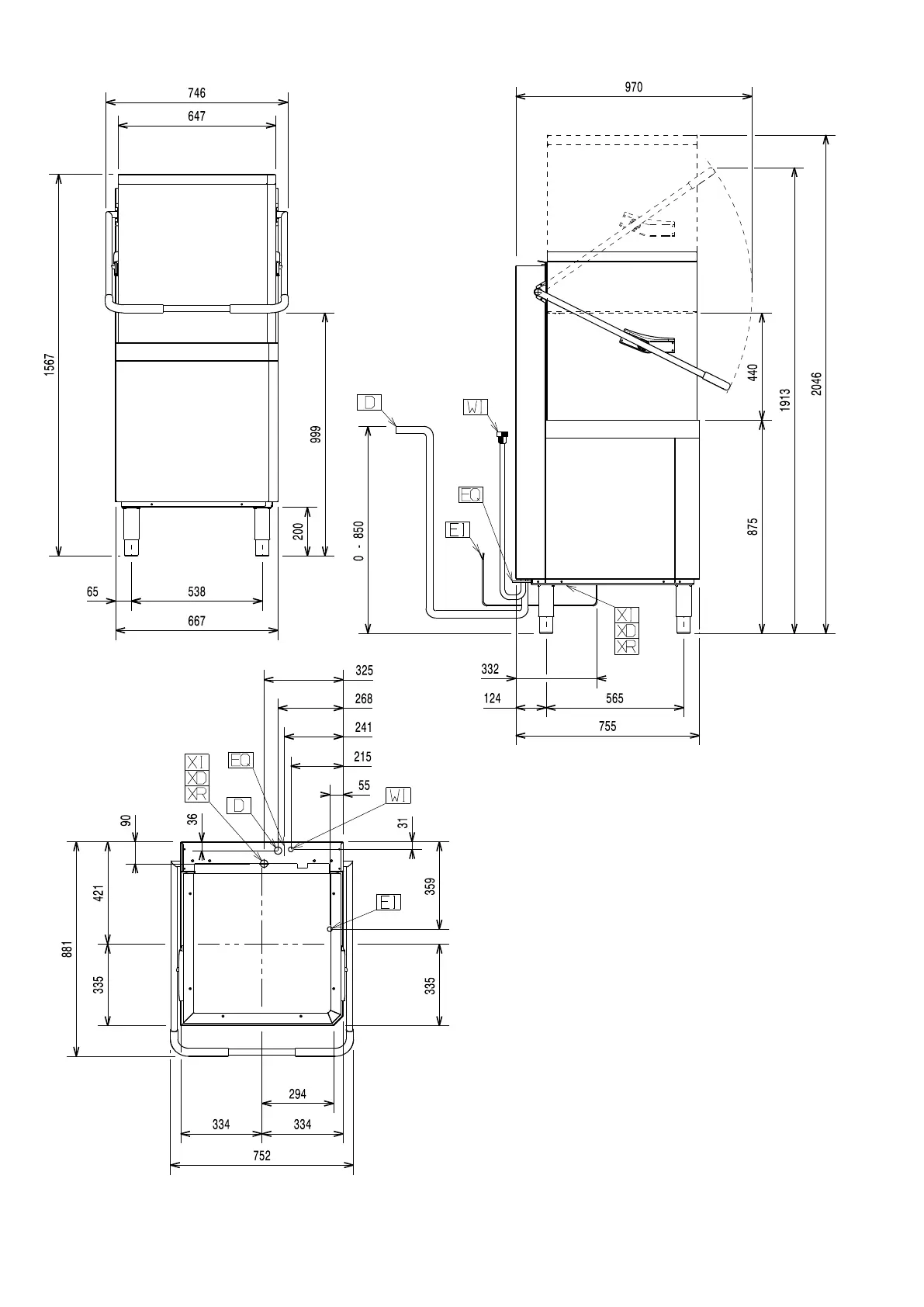 Electrolux Professional NHT8 - Installation Diagram - Double Skin, With Drain Pump