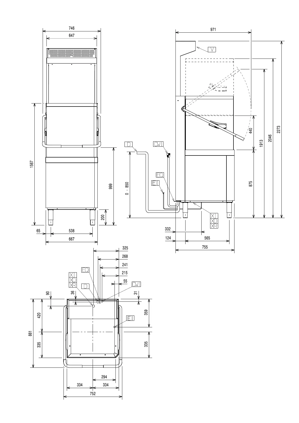Electrolux Professional NHT8 - Installation Diagram - Double Skin, With Drain Pump and ESD