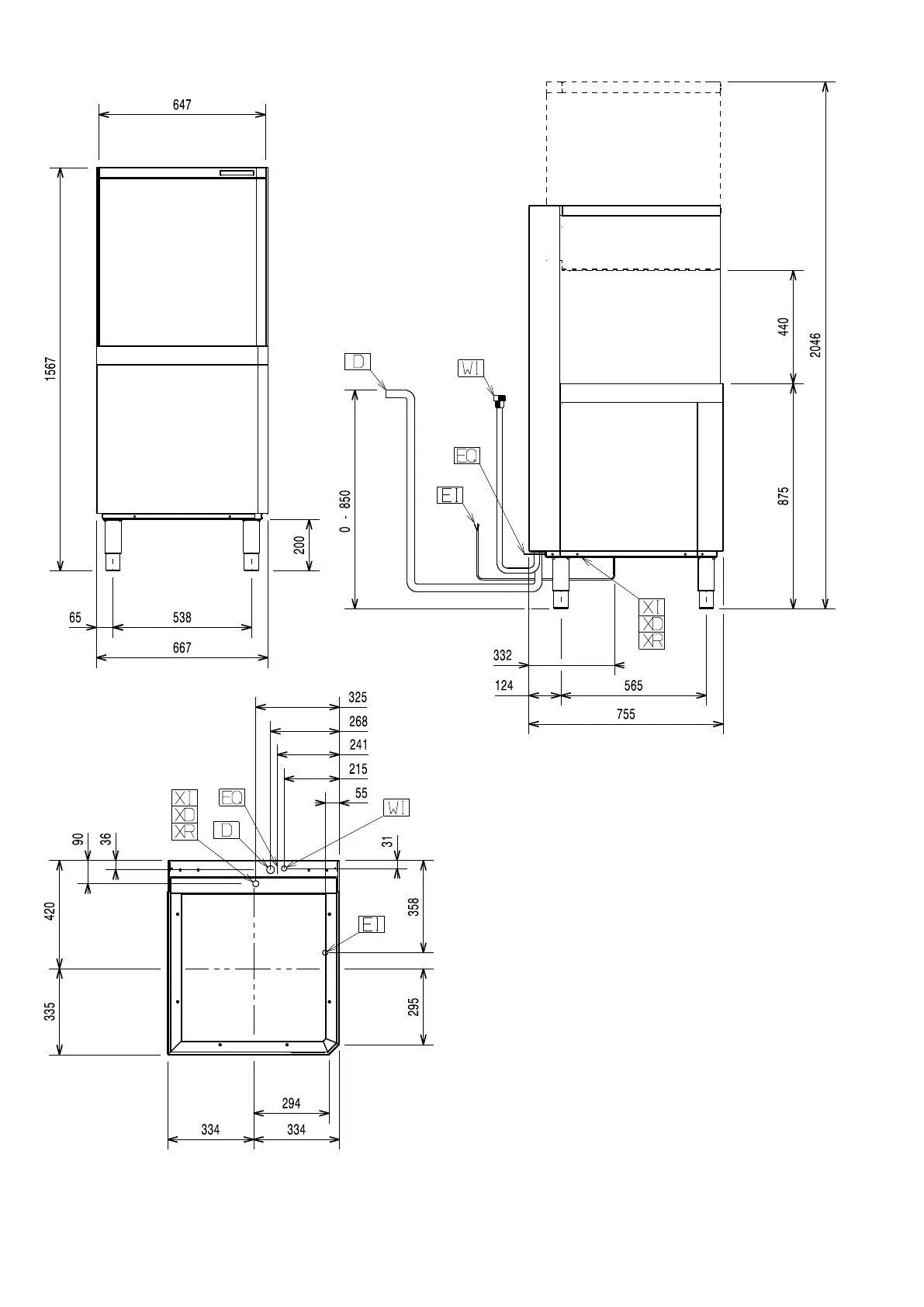 Installation diagram Automatic hood type with drain pump and