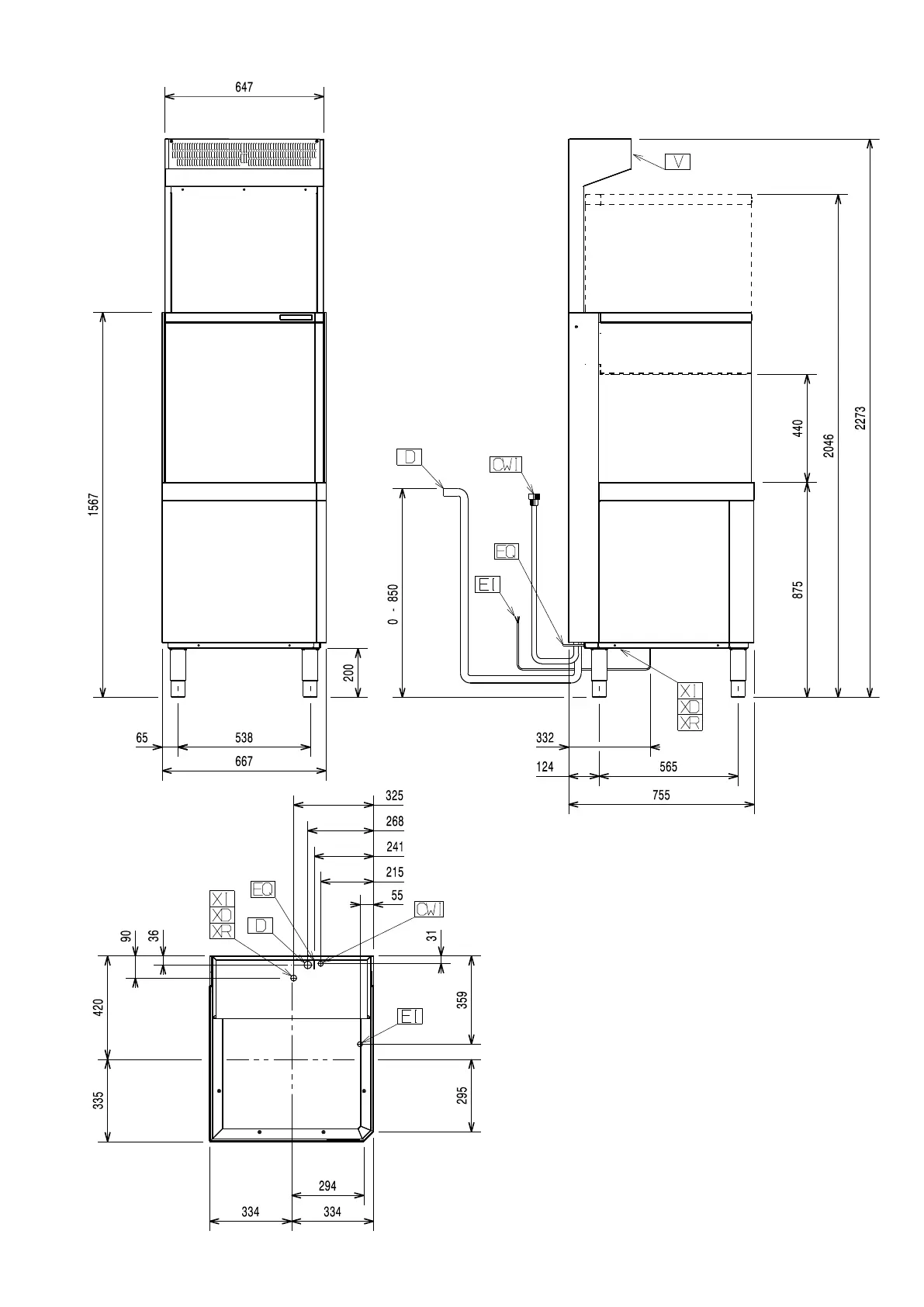 Electrolux Professional NHT8 - Installation Diagram - Automatic, With Drain Pump and ESD