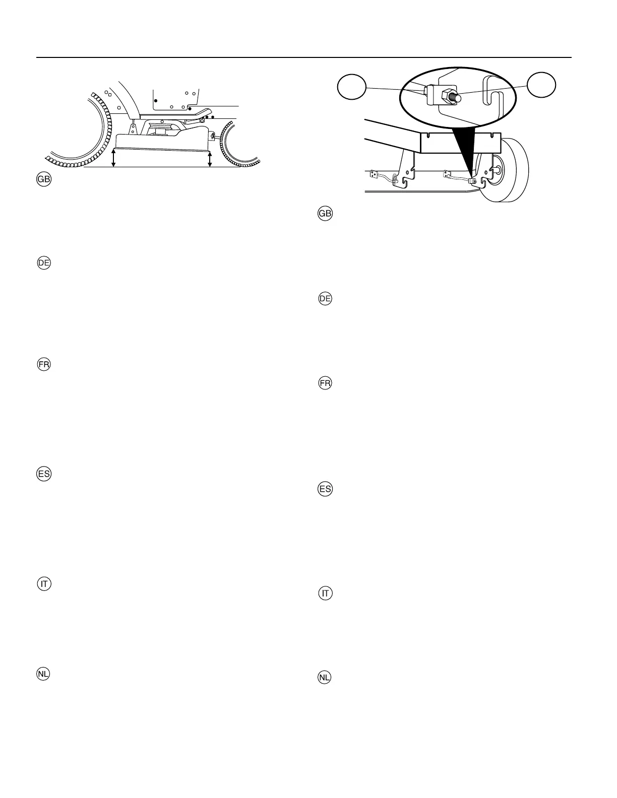 (B) van de maaikast ca. 10 mm (0,375") lager te staan dan