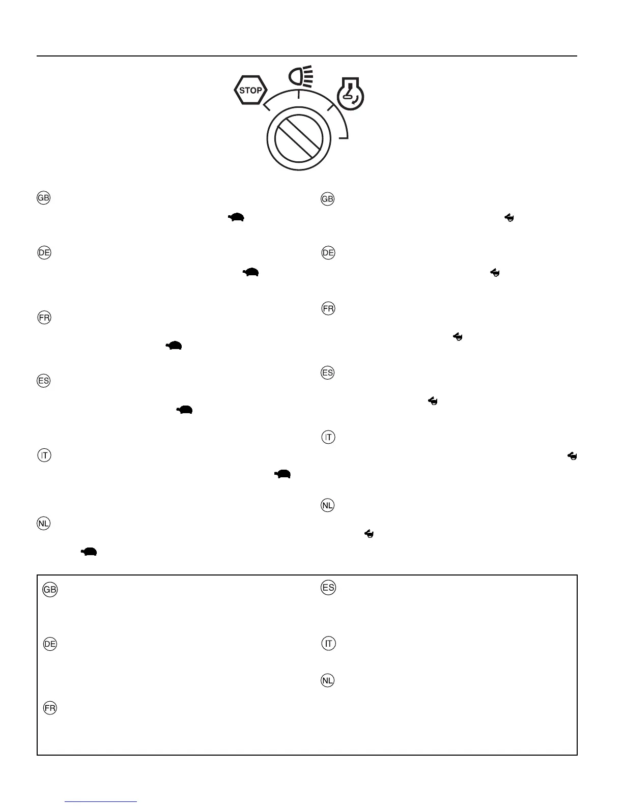 ”(lento). Sollevare il tagliaerba e girare la chiave su “STOP”.
