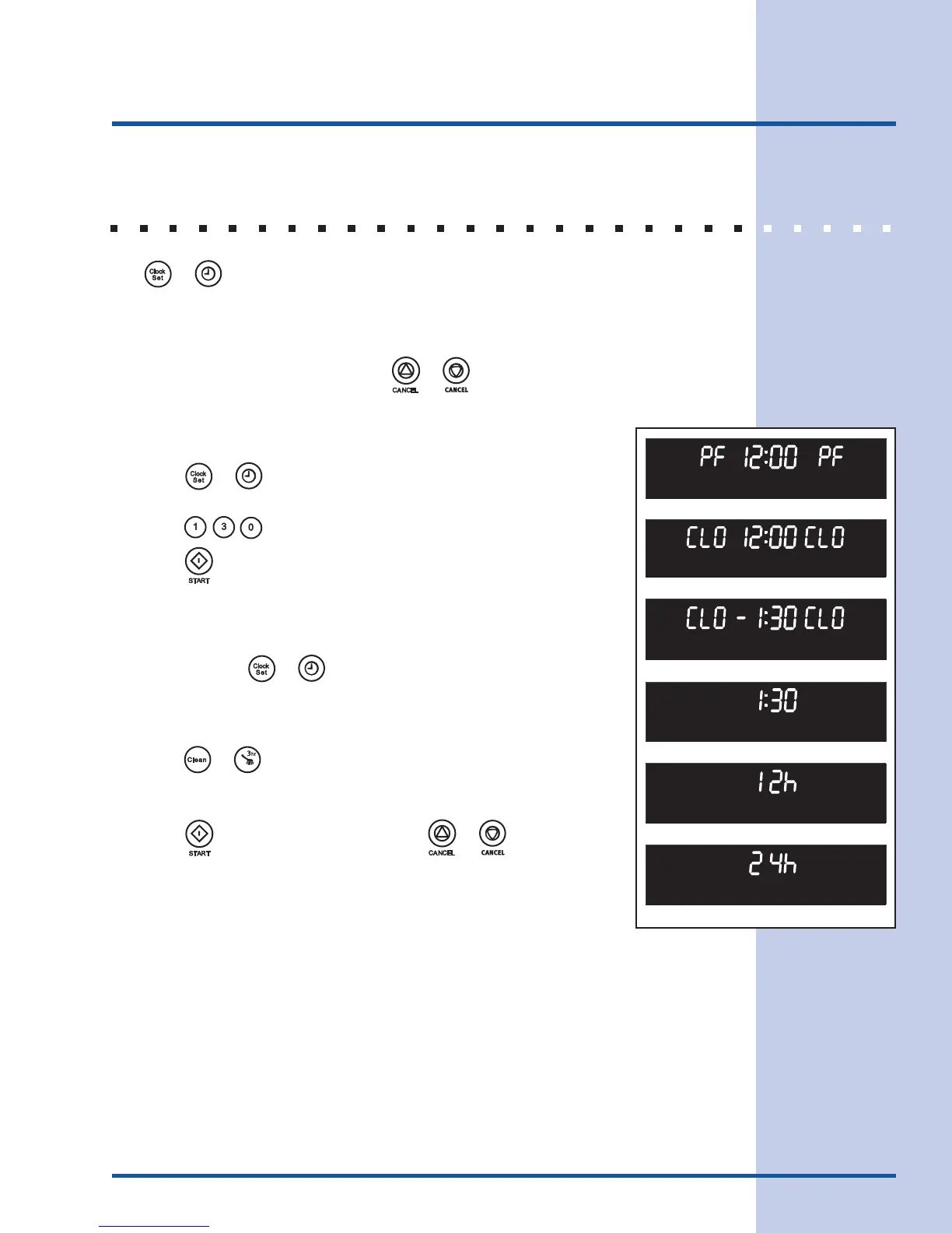 The or pad is used to set the clock. The clock may be set for 12 or 24 hour time of