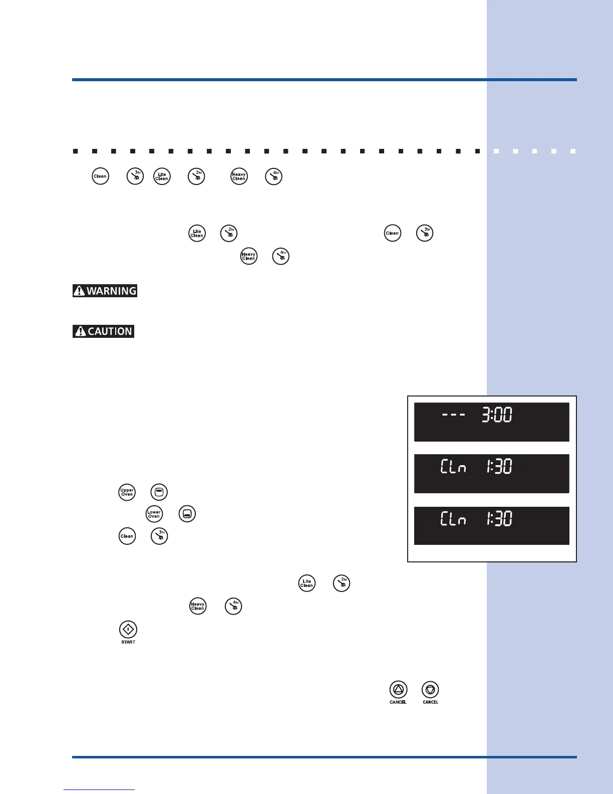 Self-Cleaning time may be chosen by pressing (or ) or 4